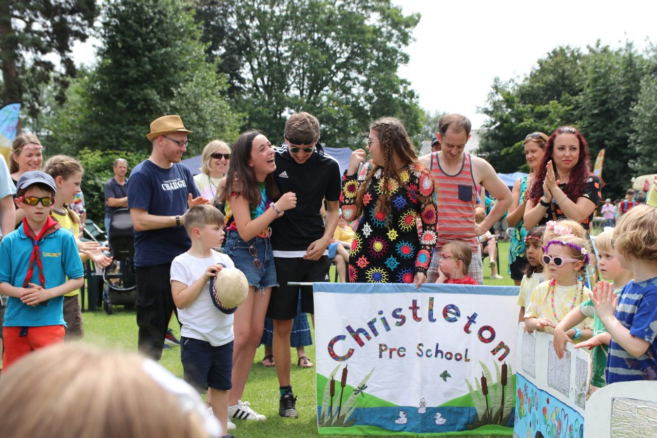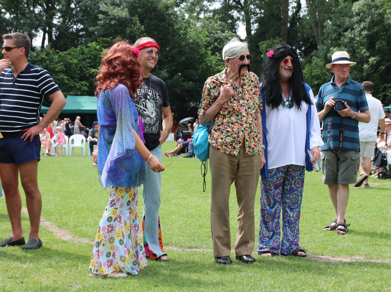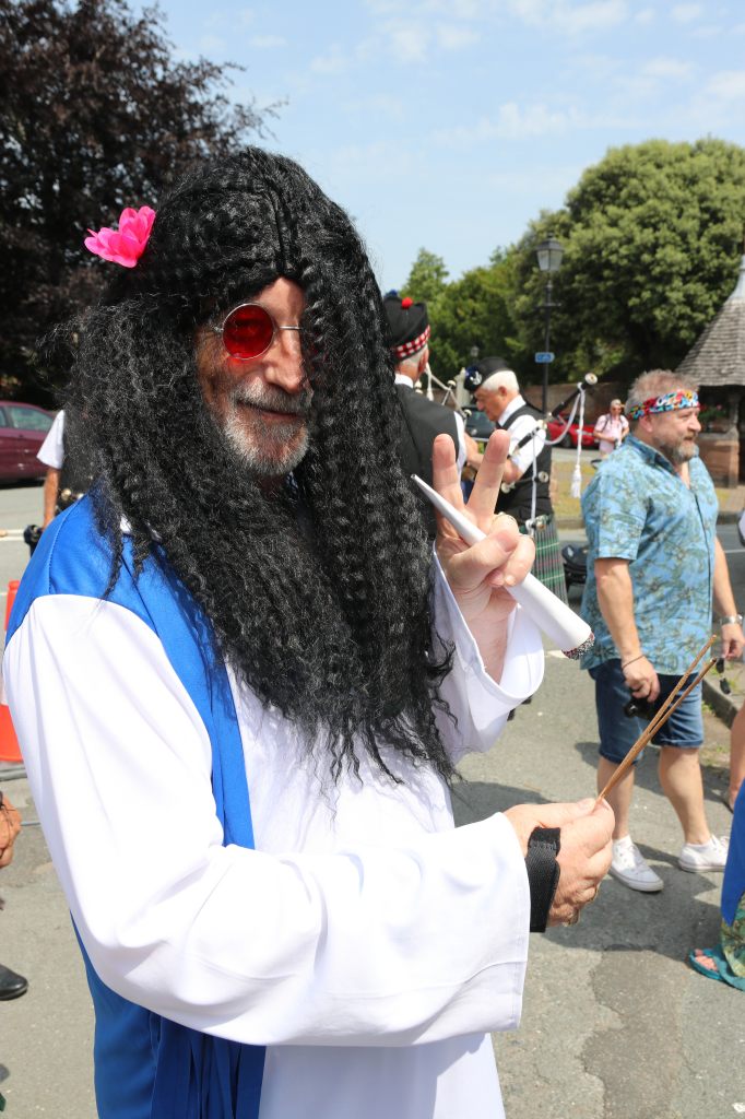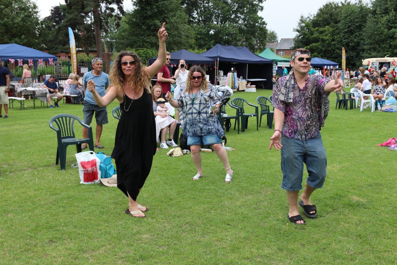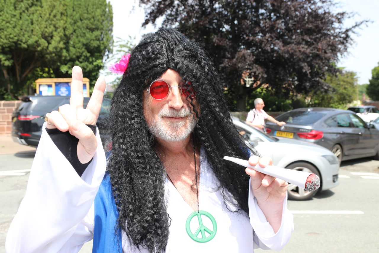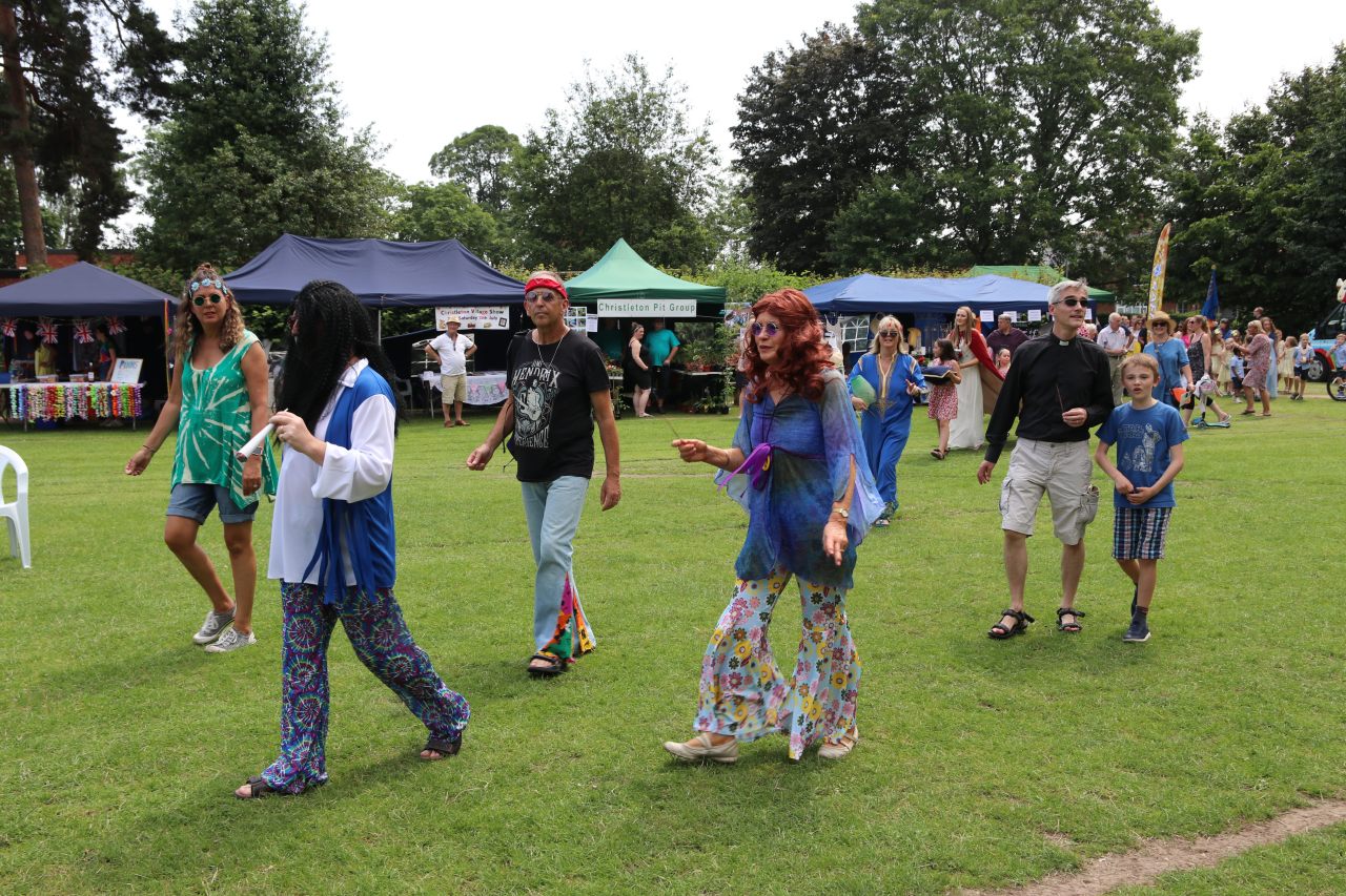 Judging of the fancy dress followed, with Alf Croston again winning the first prize, this time dressed as an “Old Rocker”, with children from the Pre School winning the Junior Prize. The theme of the Fete was Christle-stock, on the 5oth Anniversary of the original Festival at “Woodstock” when it is estimated that over 500,000 people turned out for what became a free festival expressing the movement of “Popular Music” and “the original summer of love”. We didn’t see that number of people in Christleton, but there were lots of stalls around the perimeter of the field, and the arena had some excellent musical acts to entertain the visitors.