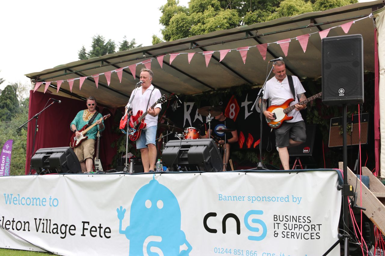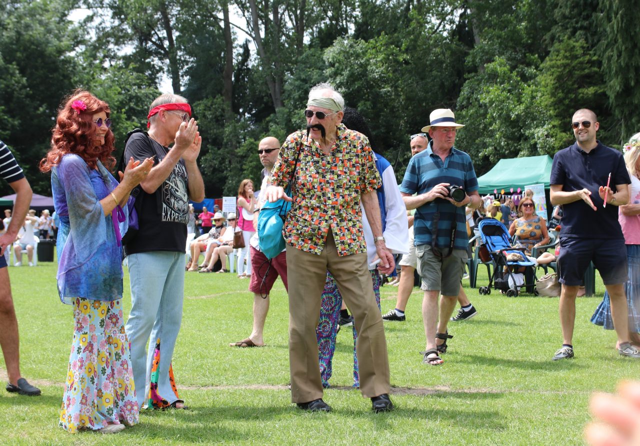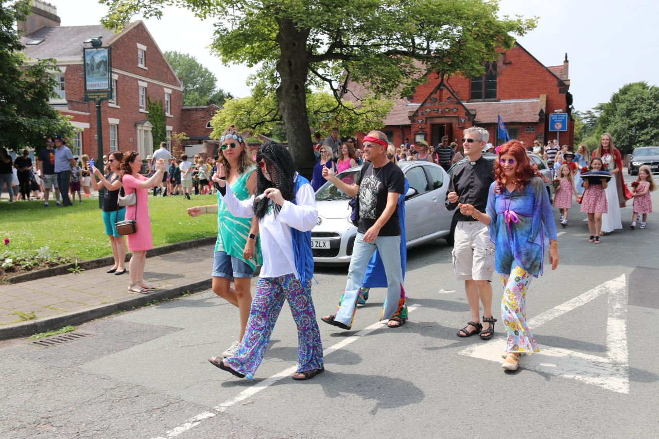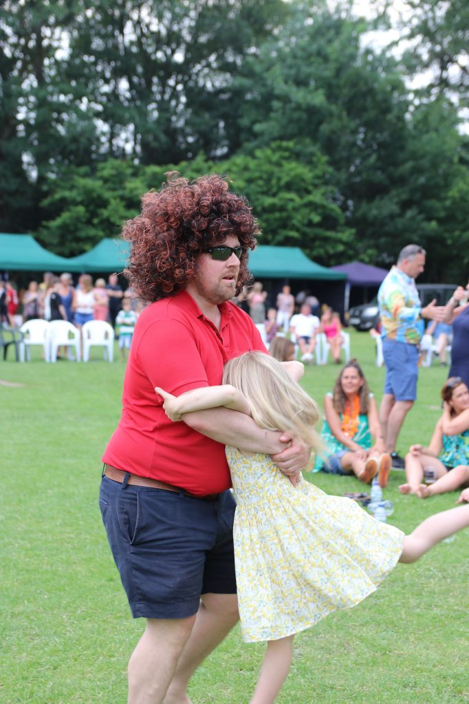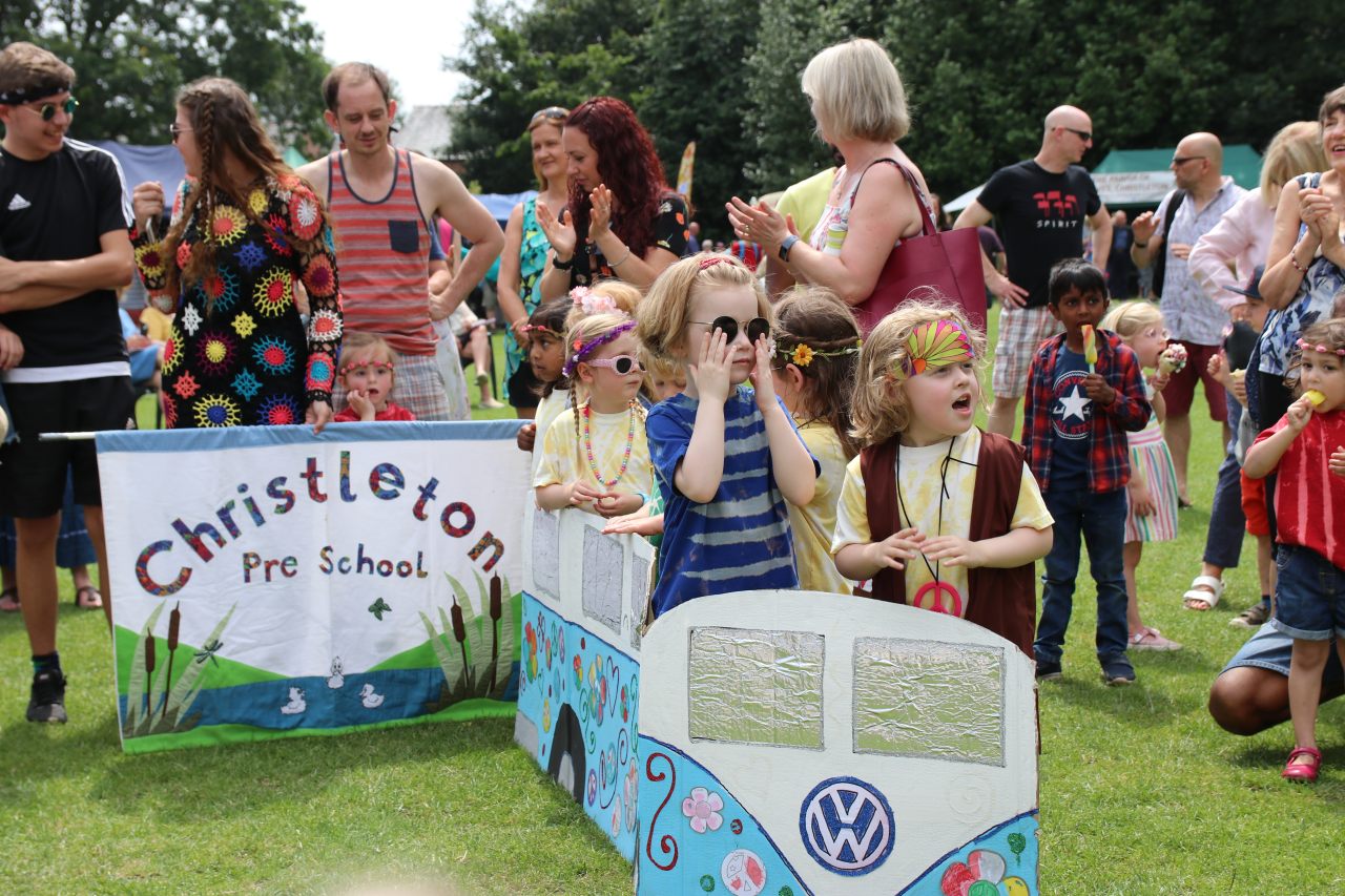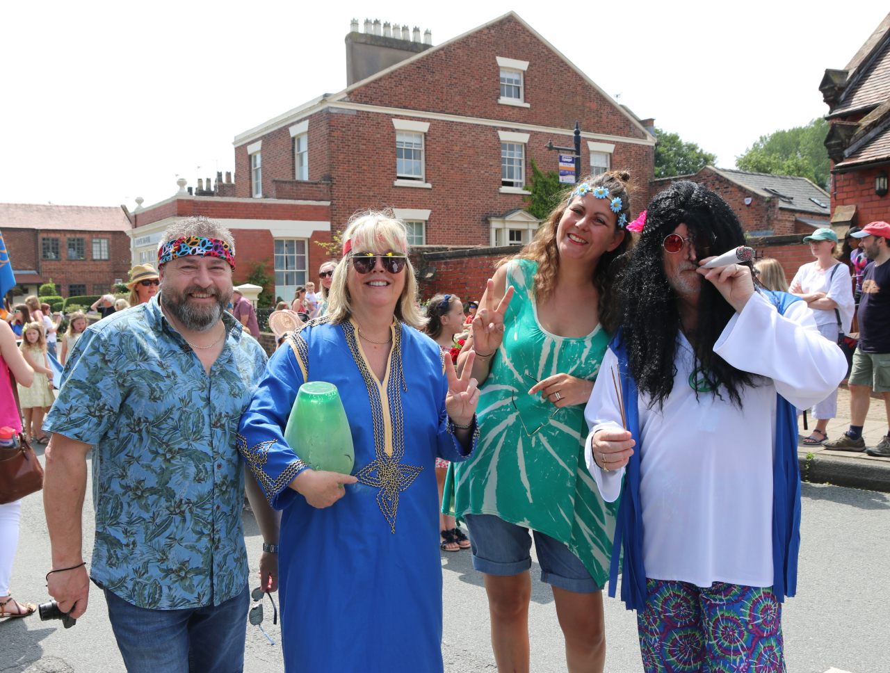 Judging of the fancy dress followed, with Alf Croston again winning the first prize, this time dressed as an “Old Rocker”, with children from the Pre School winning the Junior Prize. The theme of the Fete was Christle-stock, on the 5oth Anniversary of the original Festival at “Woodstock” when it is estimated that over 500,000 people turned out for what became a free festival expressing the movement of “Popular Music” and “the original summer of love”. We didn’t see that number of people in Christleton, but there were lots of stalls around the perimeter of the field, and the arena had some excellent musical acts to entertain the visitors.