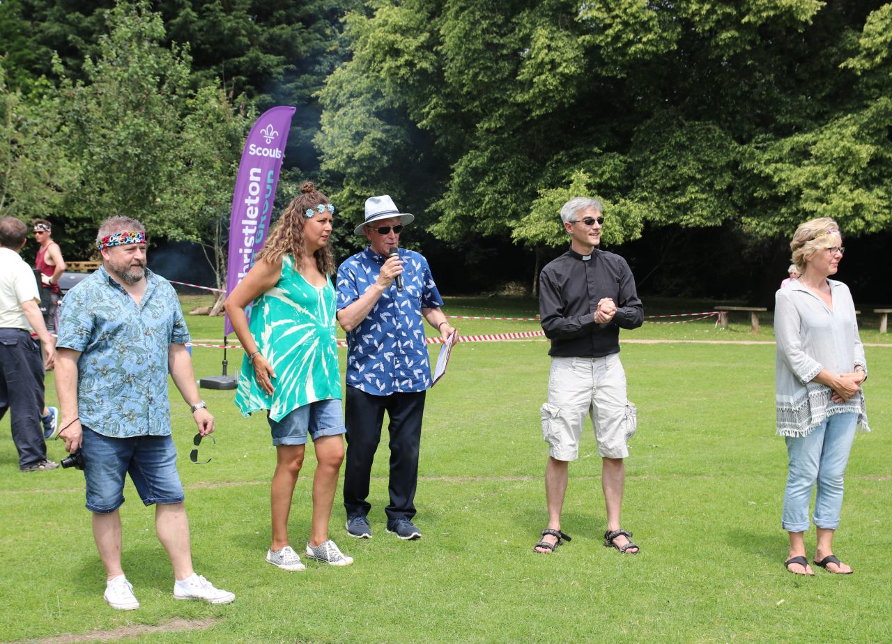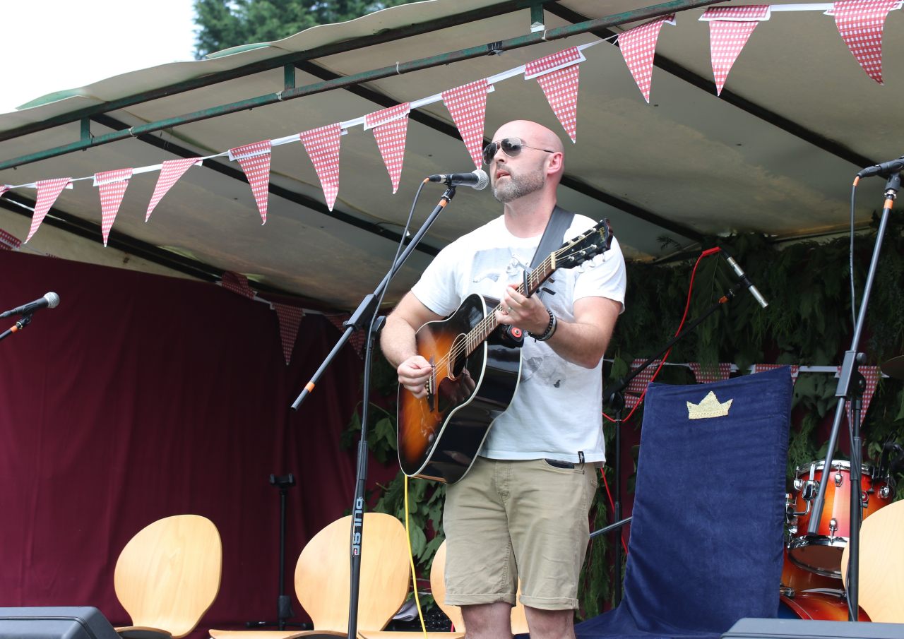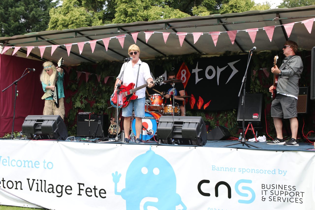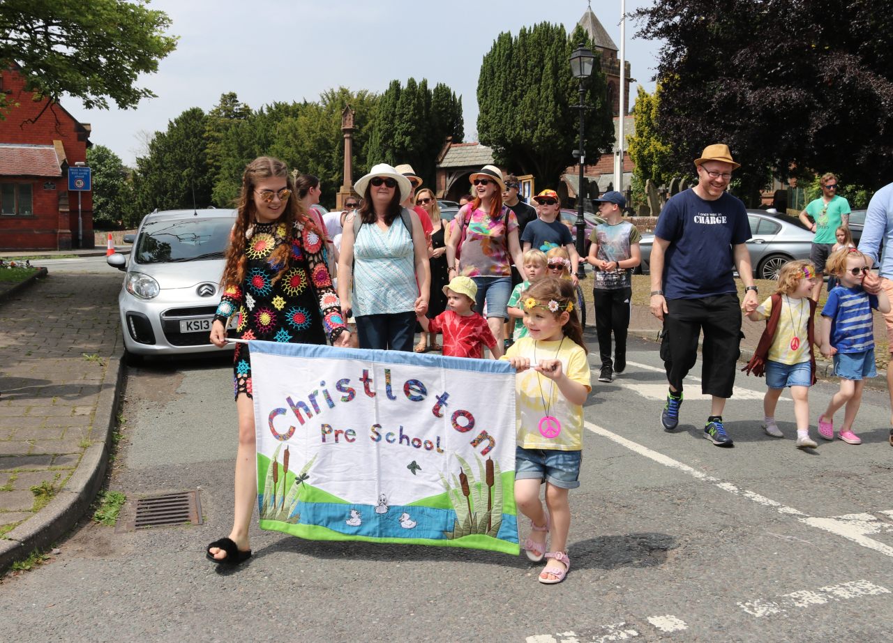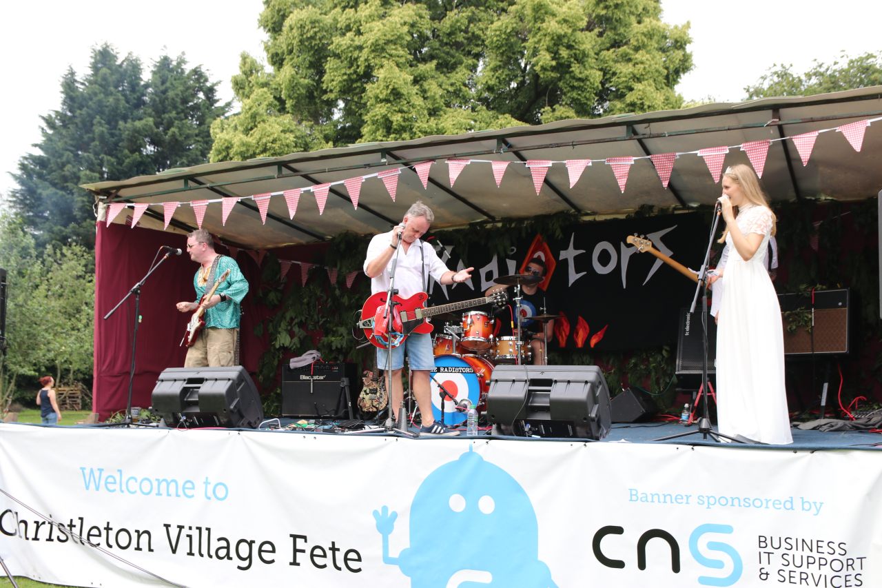 Judging of the fancy dress followed, with Alf Croston again winning the first prize, this time dressed as an “Old Rocker”, with children from the Pre School winning the Junior Prize. The theme of the Fete was Christle-stock, on the 5oth Anniversary of the original Festival at “Woodstock” when it is estimated that over 500,000 people turned out for what became a free festival expressing the movement of “Popular Music” and “the original summer of love”. We didn’t see that number of people in Christleton, but there were lots of stalls around the perimeter of the field, and the arena had some excellent musical acts to entertain the visitors.