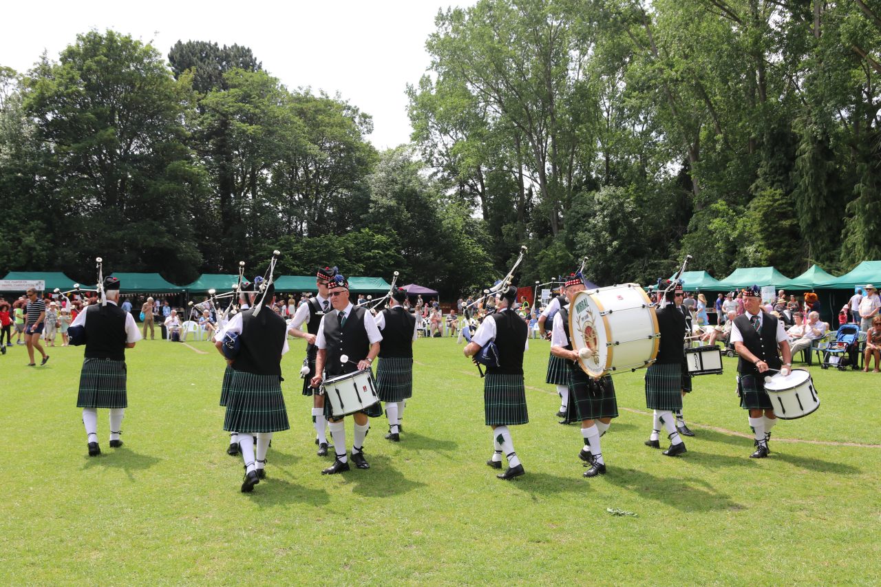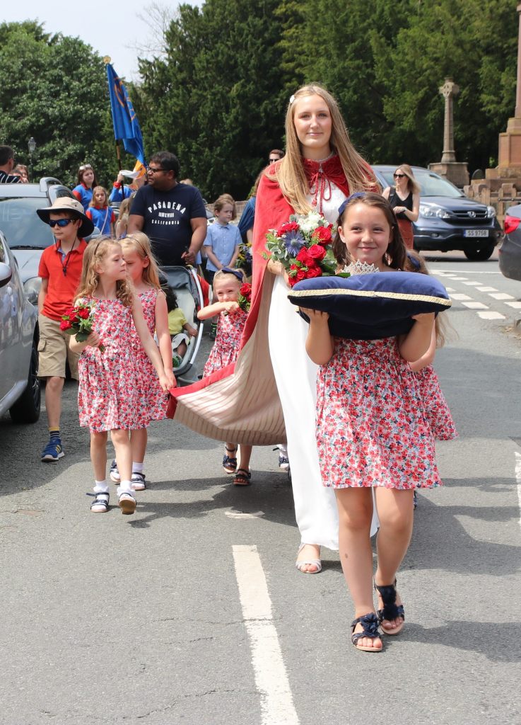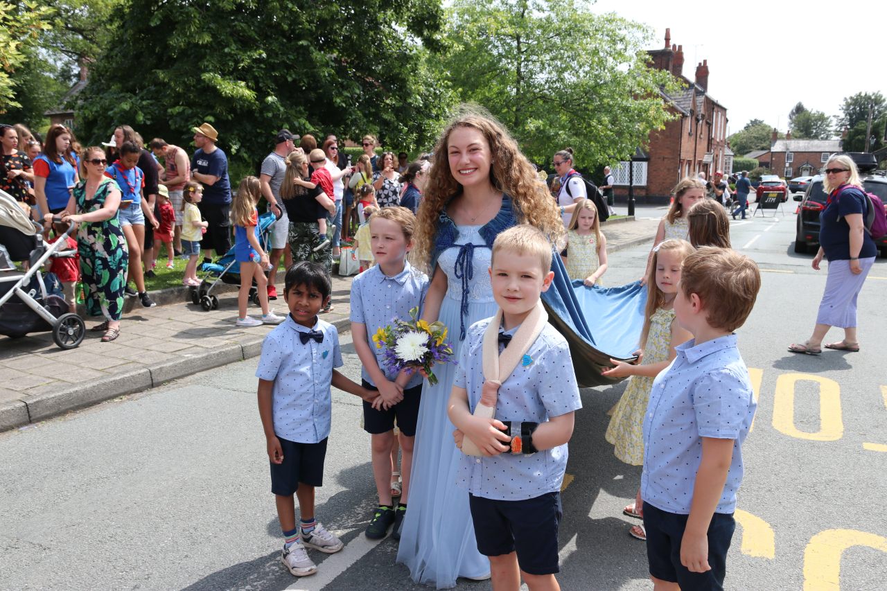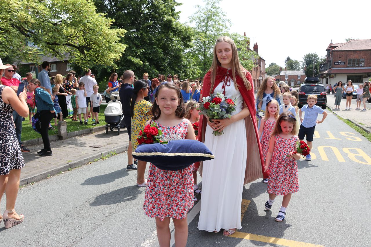 The 2019 Fete took place on a wonderful warm summer day, with the colourful Parade leaving the Village Green headed by the Pipes and drums of Wirral Pipe Band, led by Pipe Major Chris Eyre. Our new Rose Queen Emily Bolton was accompanied by her retinue, Sofia, Ruby Lou, Elsa, Tara, Evelyn, Cara and Autumn. The retiring 2018 Rose Queen Jessica Mills followed with her team, who have accomplished their duties extremely well this year. The Fete compere was David Cummings who welcomed everyone to the Primary School field, and invited the Rector, Rev. Dr Stefan Collier to crown Emily as the 2019 Christleton Rose Queen. Emily gave an excellent speech in reply during which she thanked the organisers and everyone involved, and declared the “2019 Fete Open”