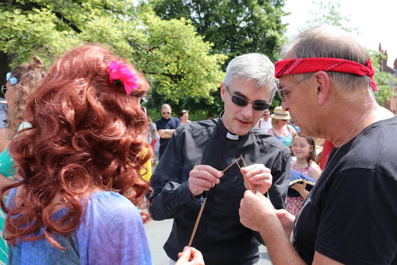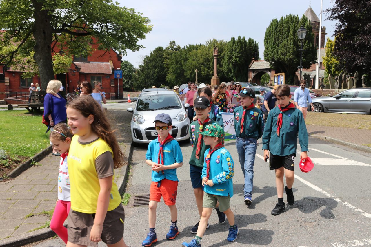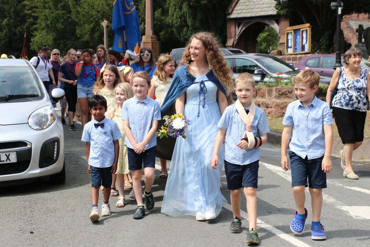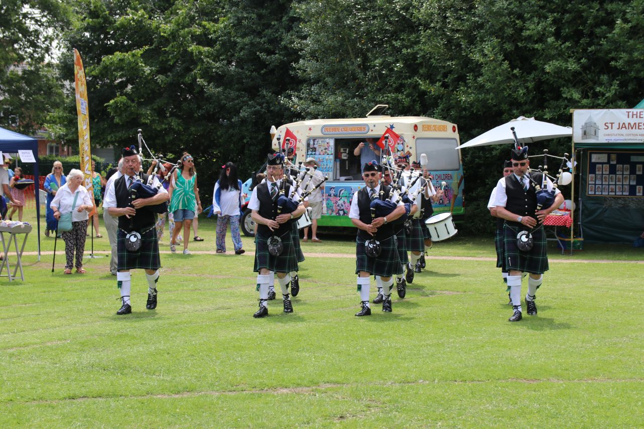 The 2019 Fete took place on a wonderful warm summer day, with the colourful Parade leaving the Village Green headed by the Pipes and drums of Wirral Pipe Band, led by Pipe Major Chris Eyre. Our new Rose Queen Emily Bolton was accompanied by her retinue, Sofia, Ruby Lou, Elsa, Tara, Evelyn, Cara and Autumn. The retiring 2018 Rose Queen Jessica Mills followed with her team, who have accomplished their duties extremely well this year. The Fete compere was David Cummings who welcomed everyone to the Primary School field, and invited the Rector, Rev. Dr Stefan Collier to crown Emily as the 2019 Christleton Rose Queen. Emily gave an excellent speech in reply during which she thanked the organisers and everyone involved, and declared the “2019 Fete Open”