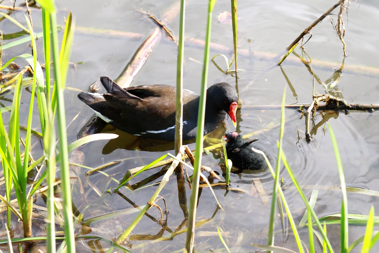 At the Pit, mallards have been very successful and at least three broods of 8, 6, and 5 ducklings have been seen. Reports of over 16 ducklings with a single mum have been seen on the canal, but predation is very likely, so numbers will often drop dramatically overnight. We’ve also seen the extraordinary pairing of a Canada with a greylag goose at the Pit. They were clearly doing a mating display when I last saw them, but at the time of writing they have disappeared, to be replaced by a pair of Canada Geese. A baby moorhen was seen being fed by mum, but no sign of any baby coots yet.