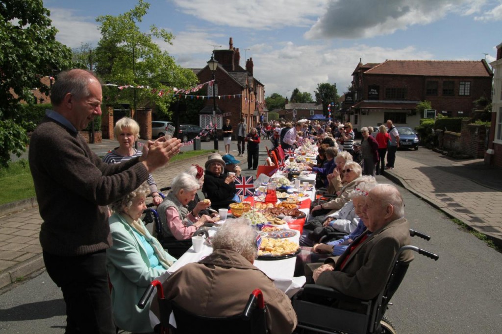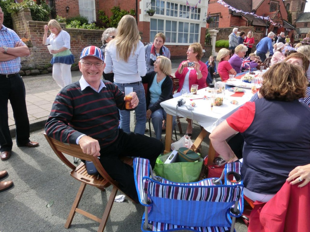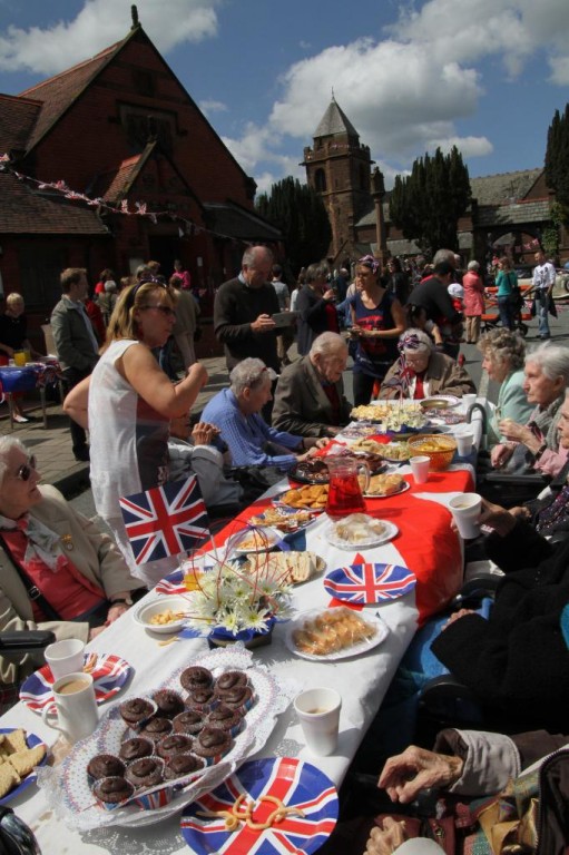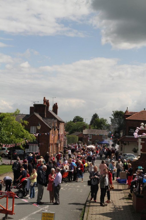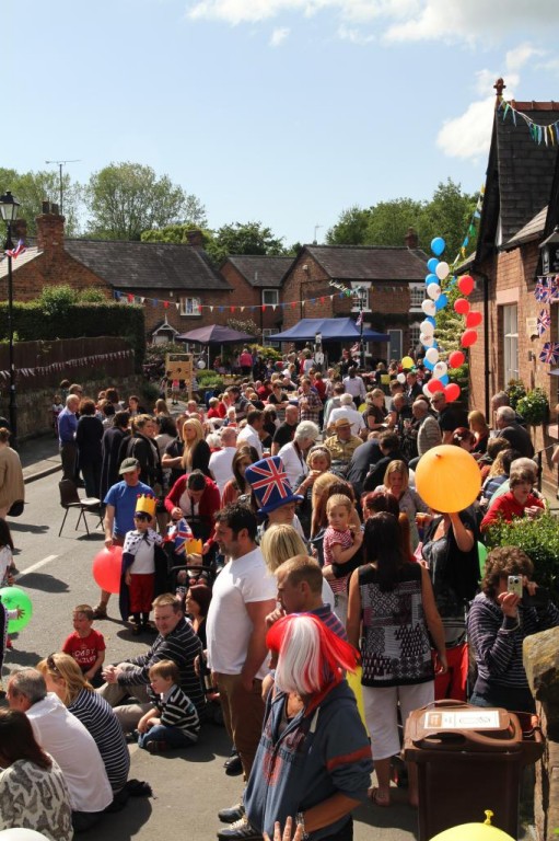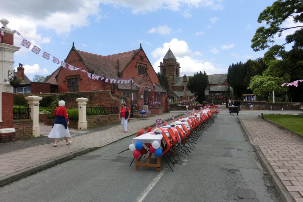 There was an extra bank holiday in 2012 to celebrate the Diamond Jubilee of Queen Elizabeth II. It was duly marked in the village of Christleton with celebrations in Village Road as well as The Park. Long tables were set out from the Parish Hall on the village green and stretched right down past The Ring O Bells. And if that was not enough there was a wedding at St. James' Church