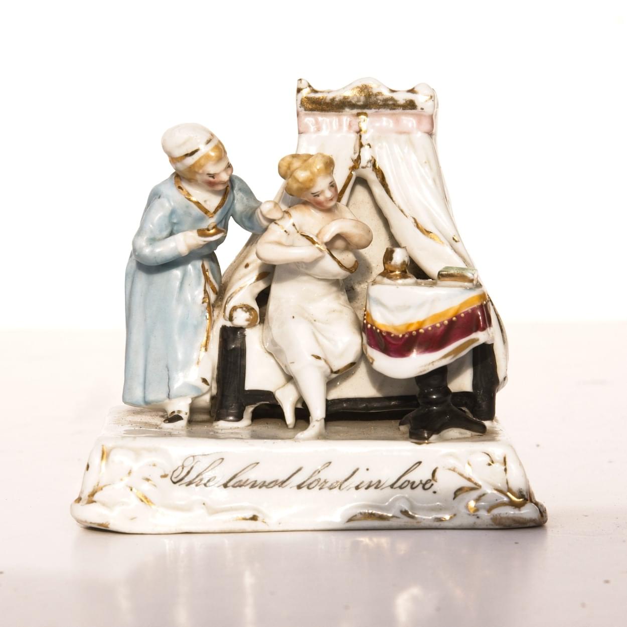 Victorian fairings are small ceramic figures that were popular in Britain during the mid to late 1800s. They’re usually made of glazed porcelain and often show people in humorous, romantic, or sometimes cheeky situations. The captions hammer home the risqué portrayals and remind me of saucy seaside postcards that would become so popular a few decades later. While they may look like simple ornaments, many fairings were designed to tell a joke or hint at a story, often with double entendres.