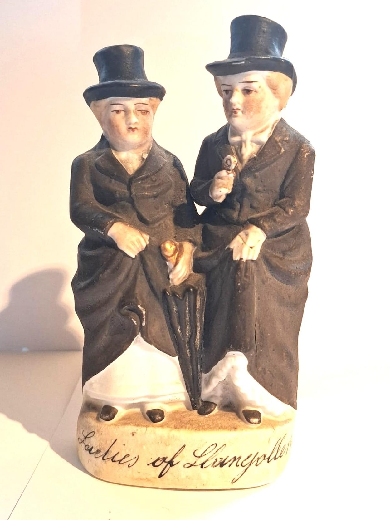 Not all Fairings were designed to be comical; some had a satirical and political bias whilst others portrayed celebrities of the period. A couple of years ago I came across the ‘Two Ladies of Llangollen’, a homage to the celebrated couple who elicited awe, admiration and a good deal of scandal in the Regency era. Most Fairings were mass-produced in Germany, the most well-known (and now recognised as the most collectable) by a company called Conta und Boehme of Pössneck in Saxony. German factories excelled at making affordable porcelain in large quantities, which made these figures cheap enough for ordinary people to buy. Ironically, although Fairings became closely associated with Victorian Britain, very few were actually made there. Instead, Britain imported them in huge numbers.