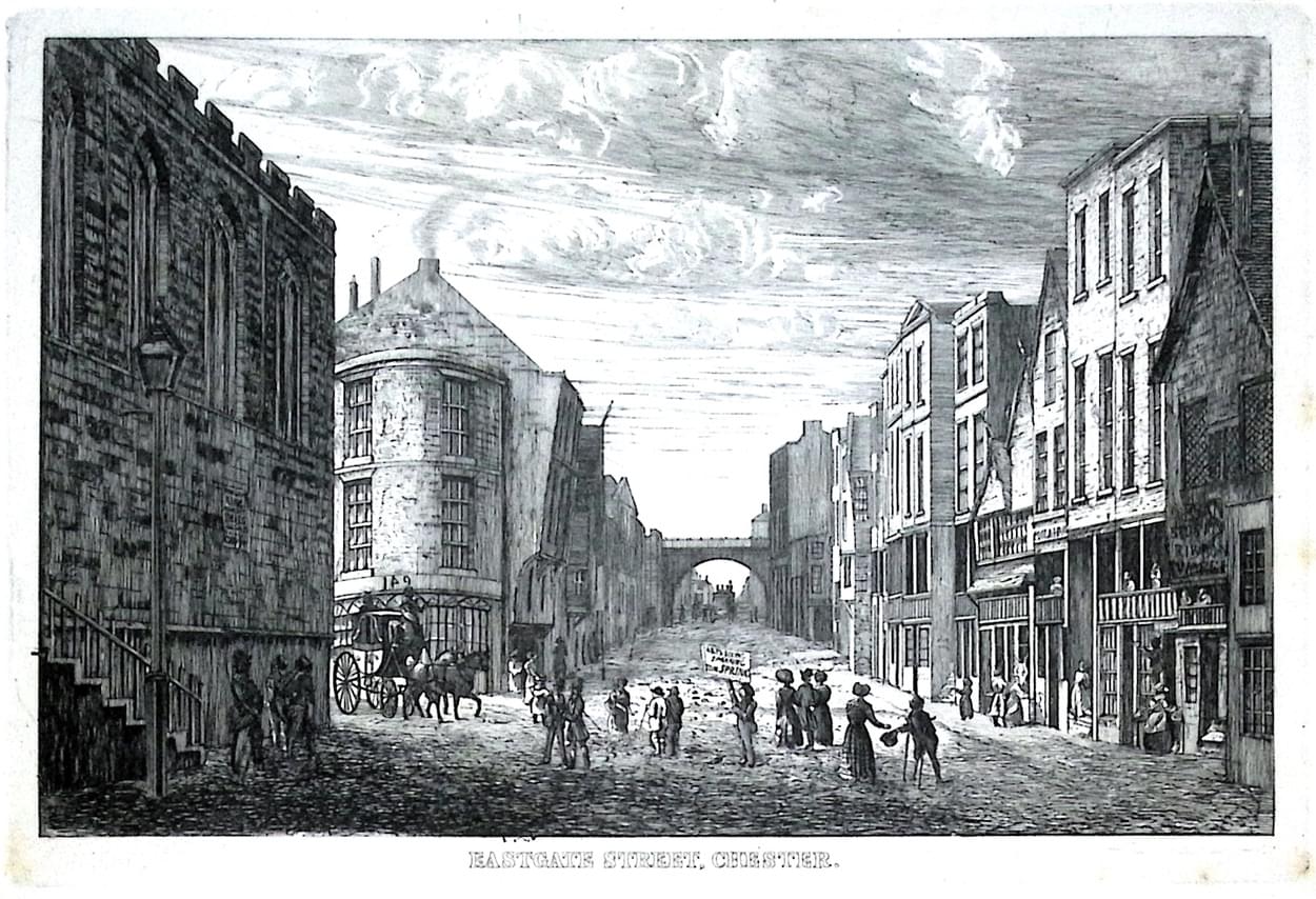 Eastgate Street, Chester. William Taske / T. Picken lithograph c.1845