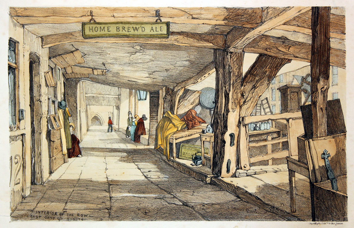 Eastgate Row Chester. Tinted lithograph by William Tasker c.1840