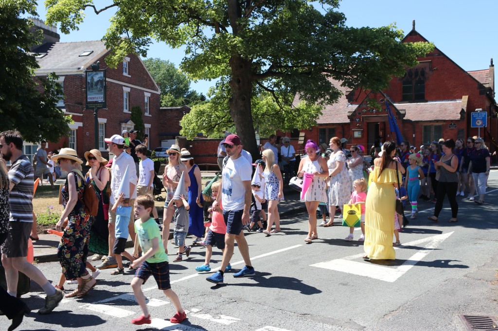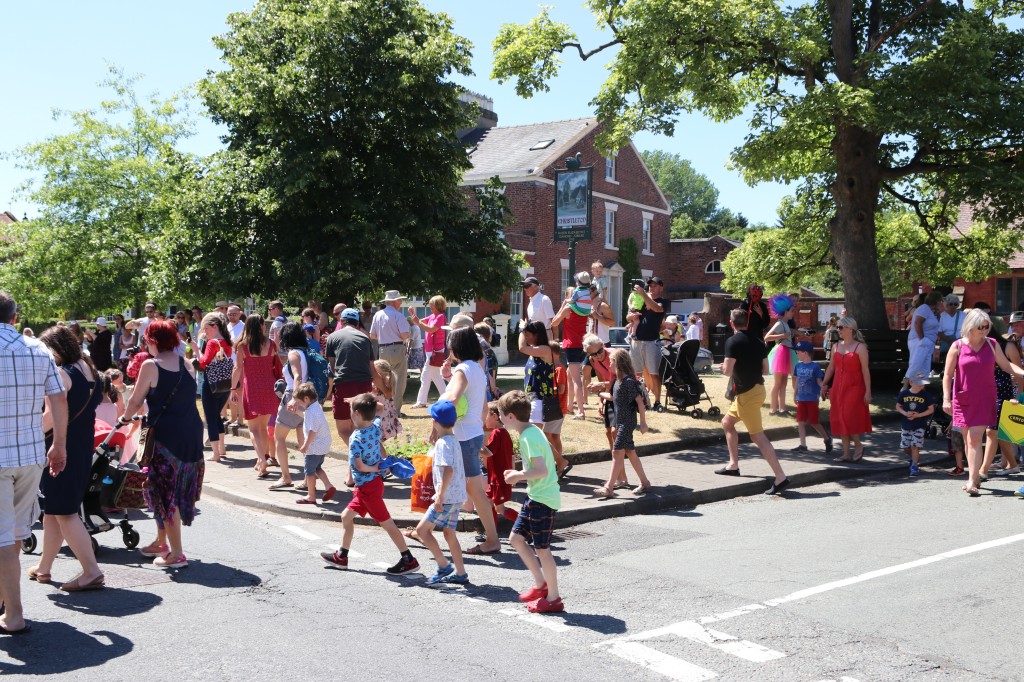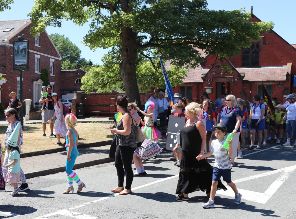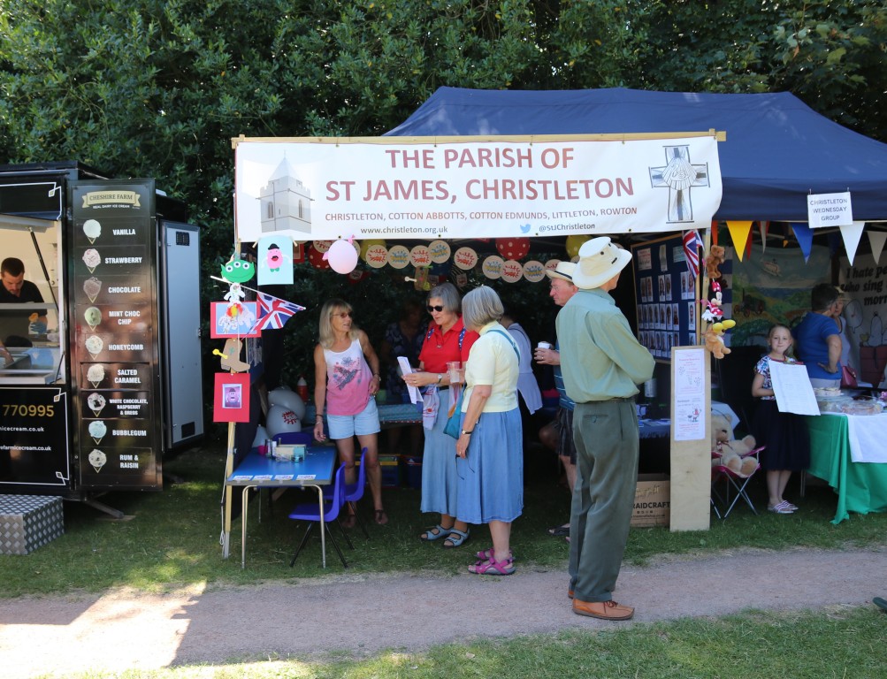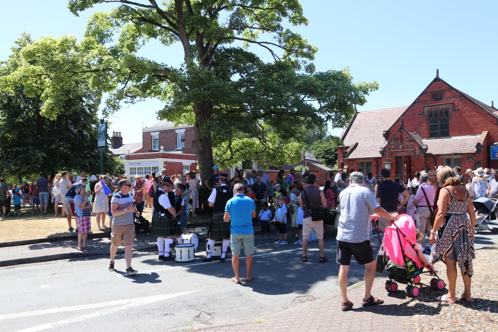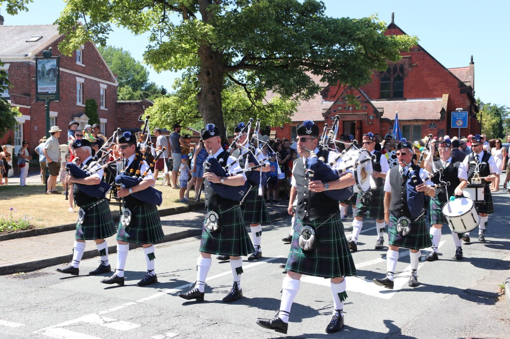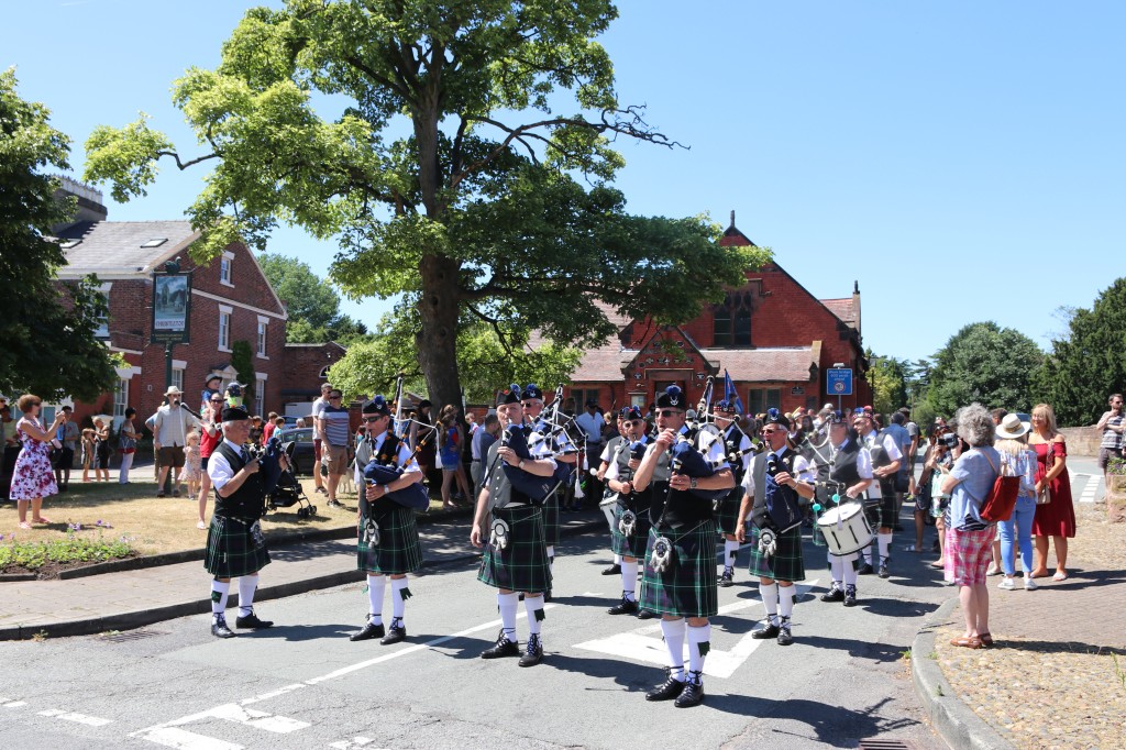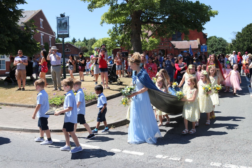 The procession gathered around the Village Green and at 1.30pm Jessica Mills our delightful Rose Queen, Flower Girls and Page Boys led the procession of young & old through the village including Alex Sturgess the retiring Rose Queen & her retinue, fancy dress competitors, the uniformed organisations and the Play Group. They were headed by the Wirral Pipe Band in really hot challenging conditions, surely one of the hottest fete days ever. The stalls on the field were wide ranging, with lots of things to do and enjoy, from Messy Church, Golf led by Eaton Golf Club members, rugby skills by the Christleton Rugby Club, drama lessons by Diddy Drama etc. These were supported by lots of demonstrations, games, activities and food & drink stalls. The Pit Group had pond insects to look at, and the Village Show members promoted their 2018 Show.