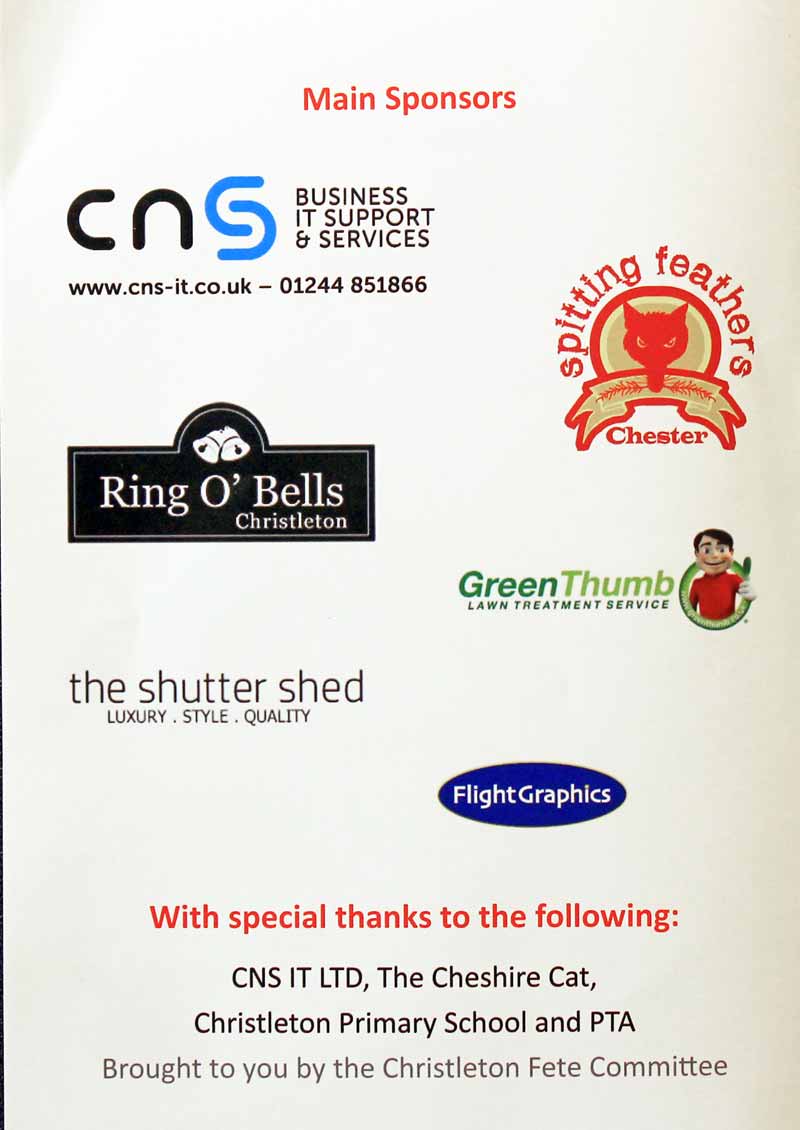 Green Thumb Lawn Treatment Service, The Shutter Shed, Flight Graphics, The Cheshire Cat, & Christleton Primary School Association.