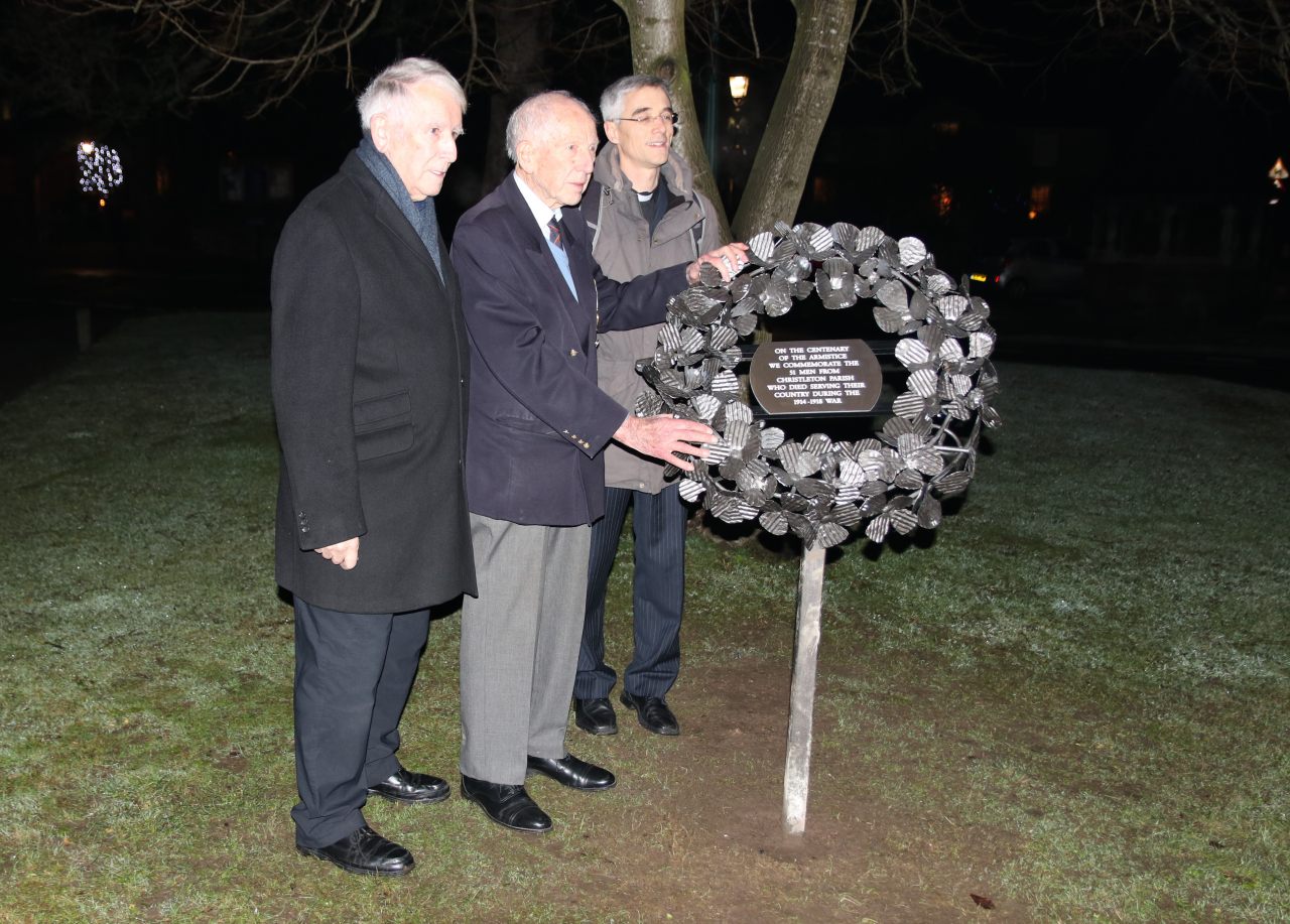 On Christmas Eve 2018 Alf Croston unveiled the new Parish memorial to the fallen from World War 1 (1914 - 1918) on the Village Green. David Cummings acted as compere on behalf of the Parish Council, and gave the background for this new commemorative memorial funded by the Parish Council & other contributors from the Parish. Alf Croston unveiled the beautifully crafted wreath of metal poppies each carrying the initials of the 51 men who died in the Great War who were connected with the Parish. The original war memorial on the Church Green has only 39 names, and it is a mystery why the other names were missed off. Many of these men are even buried in Commonwealth Graves in the churchyard, whilst others are included on the church memorial but not on the war memorial. The Rector, Revd. Dr Stefan Collier also took part in the ceremony with prayers and a dedication.