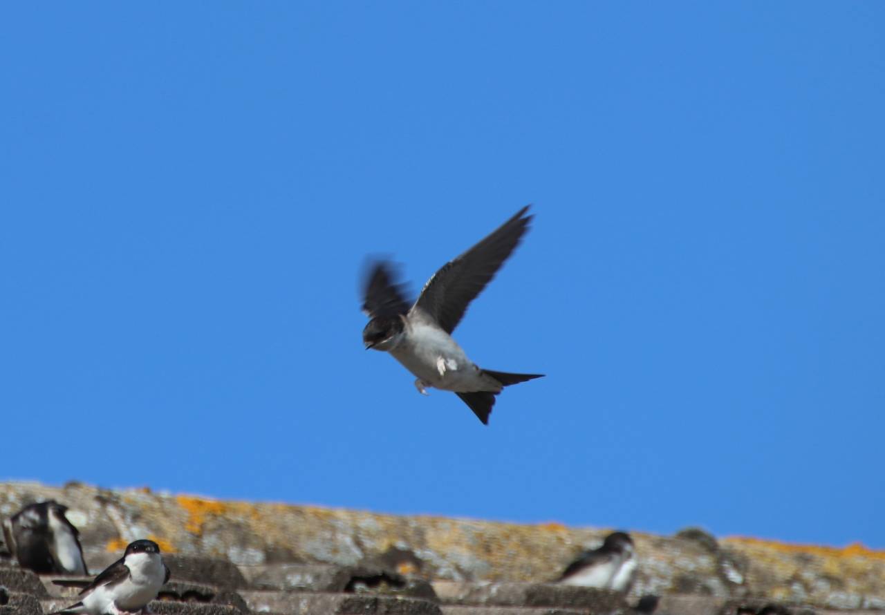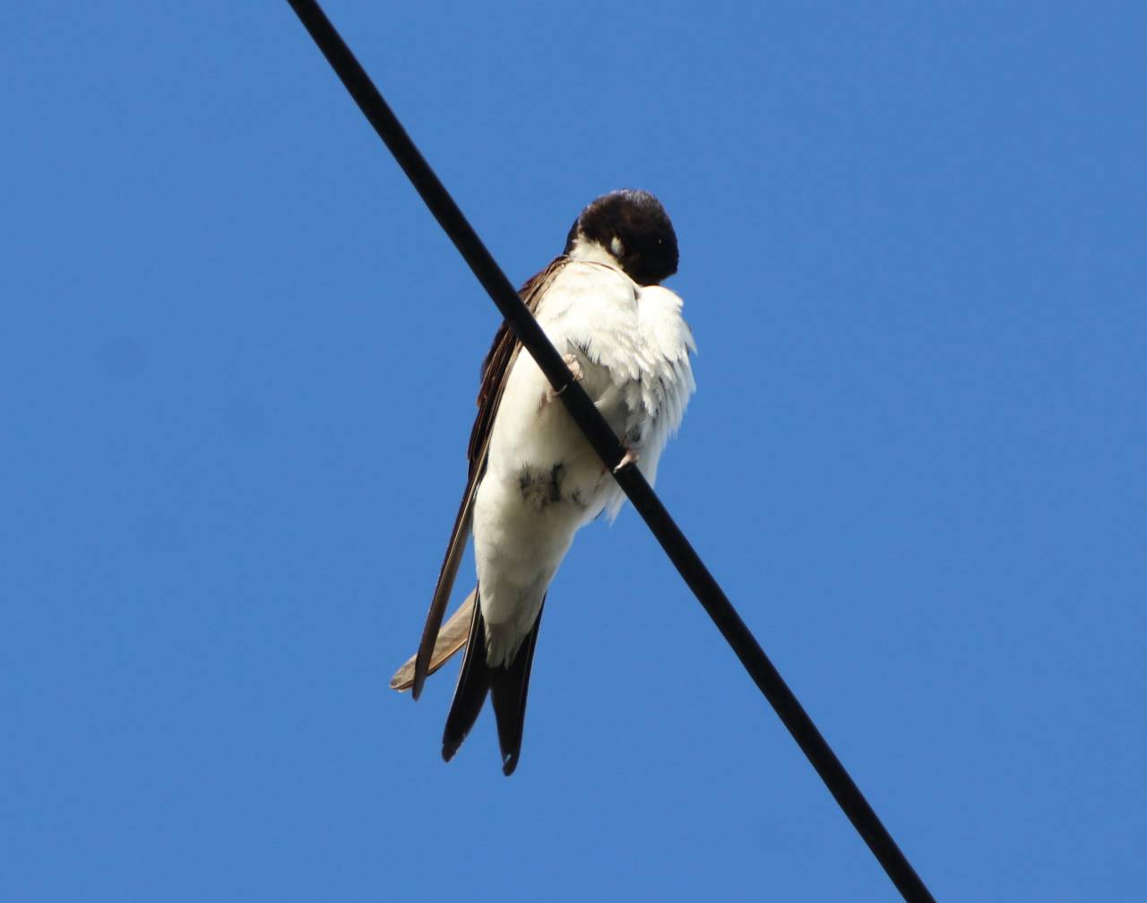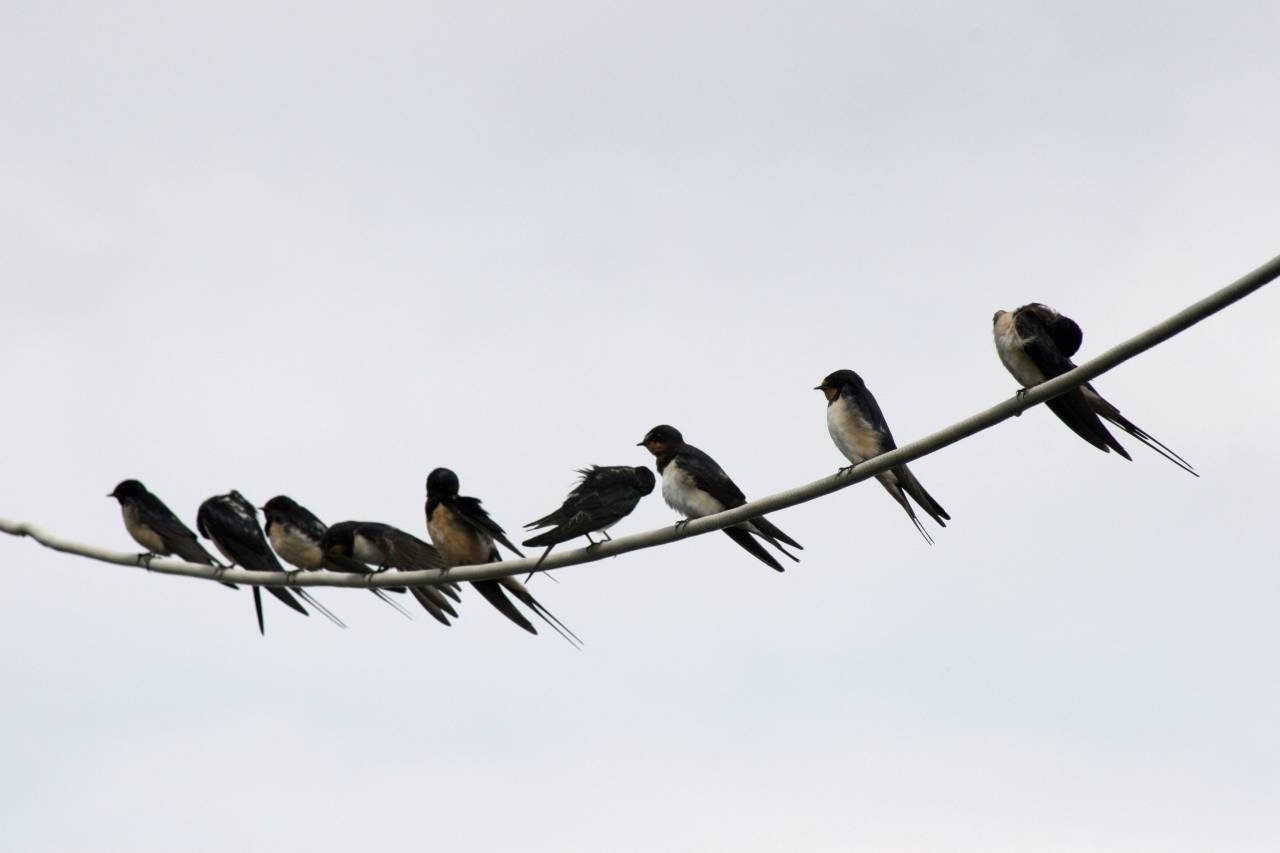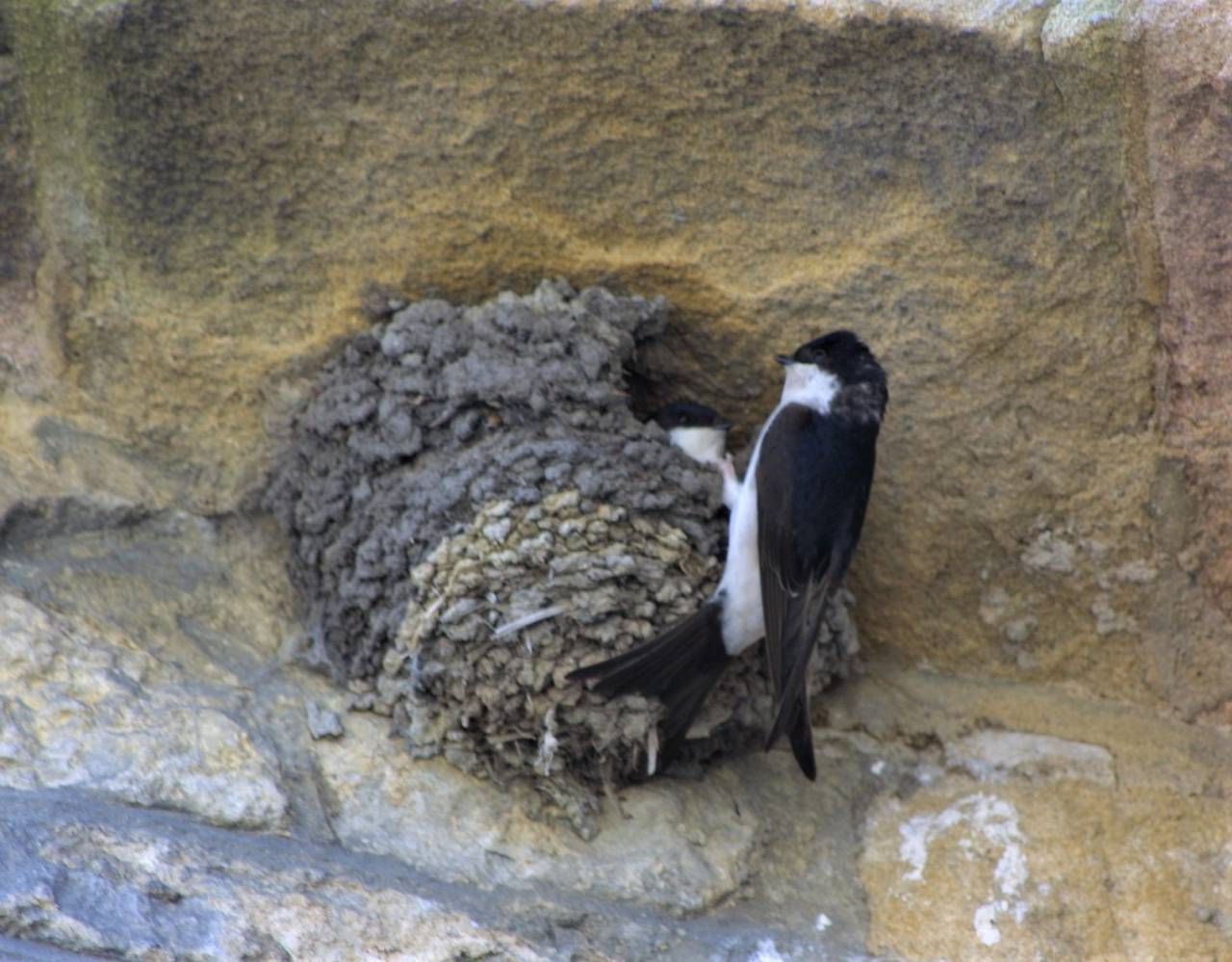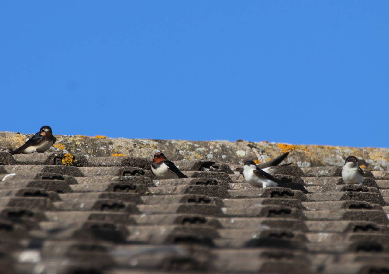 The sight of swallows and house martins gathering at the end of summer is a regular occurrence outside our house, and at the beginning of September I took most of the photographs illustrating this article. The adults and young were feeding on insects over the canal and on the roof of our house, before flying onto the telephone wires. This gathering involved up to 100 individual birds, and they were very happy to sit and pose for the camera, before being disturbed by a passing car or a dog walker. Although both species look similar to most people, there are distinct differences. The swallows plumage is black on their back but with very white underside, and they have a distinct patch of russet red under their chins. They also have long streamer like tails, which is more pronounced in adult birds. House martins are slightly chubbier, but distinctly black and white, and shorter v shaped tails. House martins usually nest in cup shaped nests attached to the underside of roofs as at Walk Mill, or in the case of swallows, open ledges on wooden buildings or in barns. One of the best sites in the Parish is at Cotton Farm where the farm buildings play host to large numbers of swallows and house martins. Eaton Hall on the Westminster Estate is host to the biggest number of house martins that I’ve ever seen. They can be viewed on the Estate Gardens Open Days during the summer.