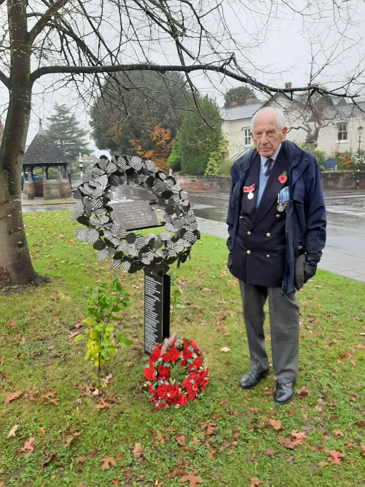 Three years ago the Parish Council Commissioned Forge Master Andrew Smith from Tattenhall to create a new Poppy Wreath Sculpture to Commemorate the Centenary of the end of WWI. The aim was also to recognise the 51 men from the Village who fell during the war, or who died of their injuries soon afterwards and are buried in the churchyard in Commonwealth War Graves. The original Village War memorial on the Church Green completed in 1923 has 39 names. Research by the Local History Group for the Christleton Great War Stories Book uncovered 12 more names of men from the village who died. When the new Poppy Wreath memorial was completed the men’s initials were painted onto a poppy, but now Christleton Local History Group has funded two unique metal plaques which give the names and regimental details of all the men who died. This enhances the memorial and the story of the men who fell. Alf Croston placed a fresh flower wreath at the foot of both memorials on Remembrance Day 2020 on behalf of the Community.