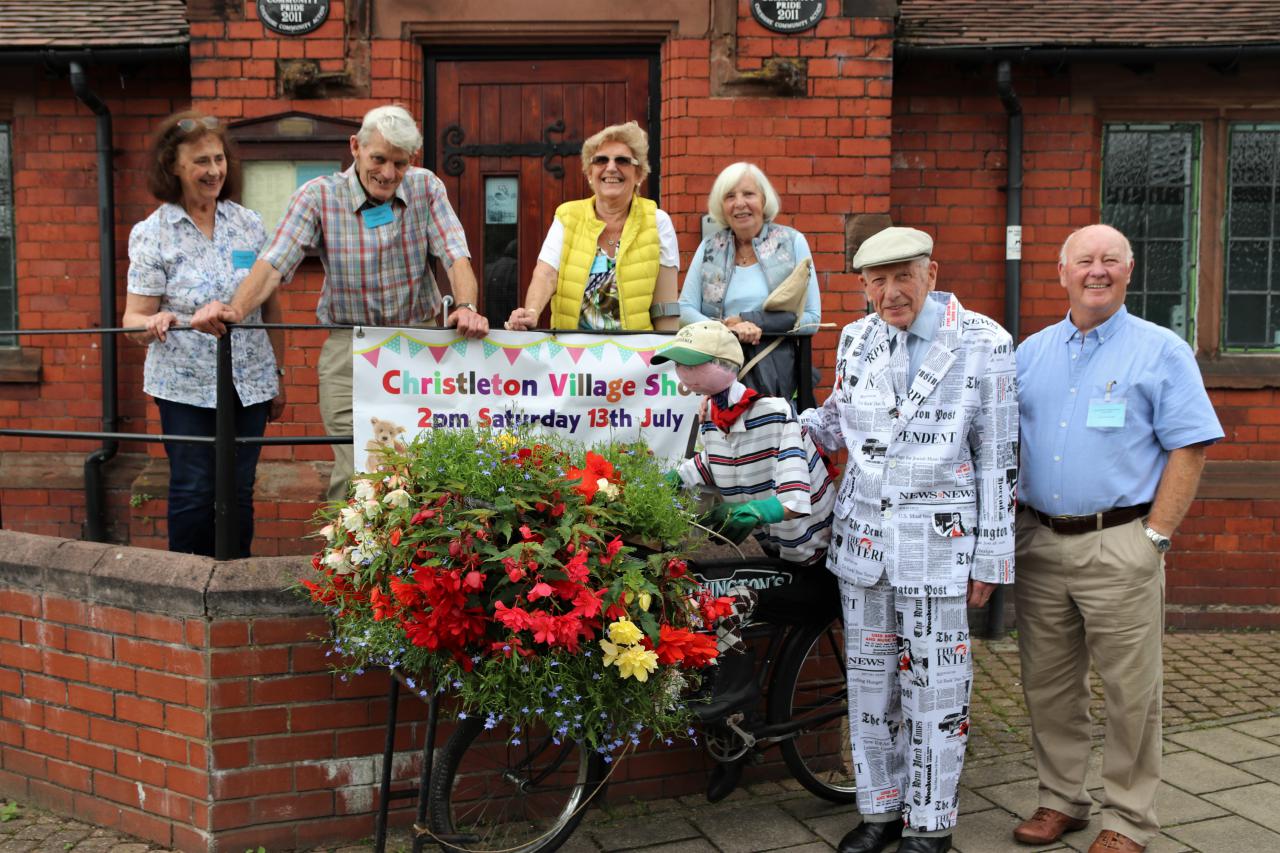 One of the very sad things about the Village during the three years that covid has affected the whole country, is that several well established annual events have sadly had to be postponed. The Village Show is one of them, and this article and the accompanying pictures are intended to stimulate interest, so that we can think about holding the show again next year. The Show has had several forms since its establishment in 1871, but it was in 1990 that the Parish Council revived the Show in its current form and a committee of villagers has organised the Show between 1992 and 2019. The Show in the Parish Hall provides the facilities for entries into a wide selection of categories, enabling competitors, both adults and children, to display superb creative and growing skills, detailed below. I have provided a selection of images from the Village Archives to give everyone a chance to see what a wide selection of creative people we have. The Show is now sponsored by different individuals each year, and with entrants being charged a small amount to enter, to cover the costs of staging the show, all proceeds are donated to local and national charities. Judges are all independent, and give their services for a small fee, often donated back for our charities, and there are now 24 trophies to be won, in addition to class certificates. The Show is usually opened by a local celebrity such as the late Jim Partington, Les George OBE, Margaret Croston BEM, or more recently local Chester Councillor Stuart Parker MBE who has given the show his enthusiastic support for many years. Publicity banners promote the show at various places in the village and Edward Elliott’s special floral bicycle is always a great publicity attraction. The schedule is published early in the year for the show, so be prepared to enter items in these categories; We will be delighted to see you. Flowers; Floral Art; Fruit & Vegetables; Baking & Preserves; Decorative cakes, Plates of Food for a Street Party / Ploughmans’lunch; Wines & Cordials; Hard Crafts and Textiles; Art & Photography. A Children’s section with a wide variety of themes;
