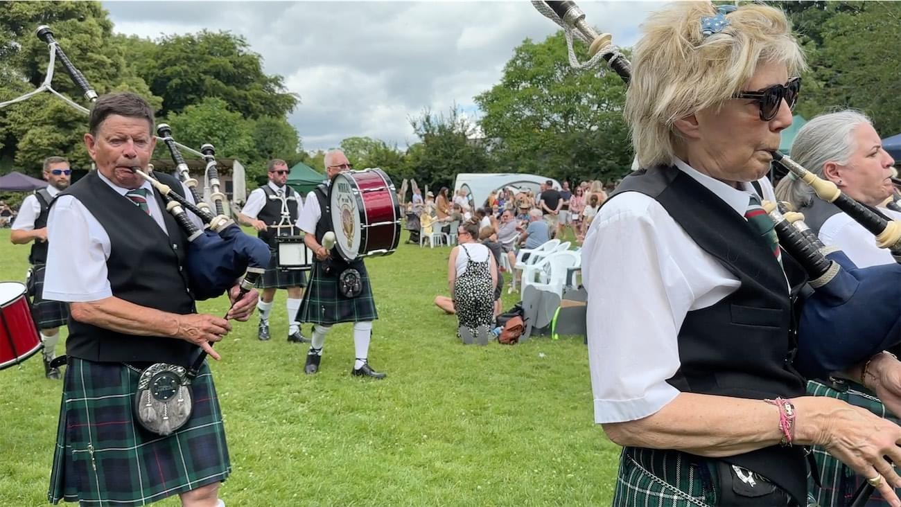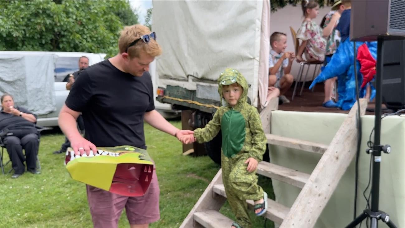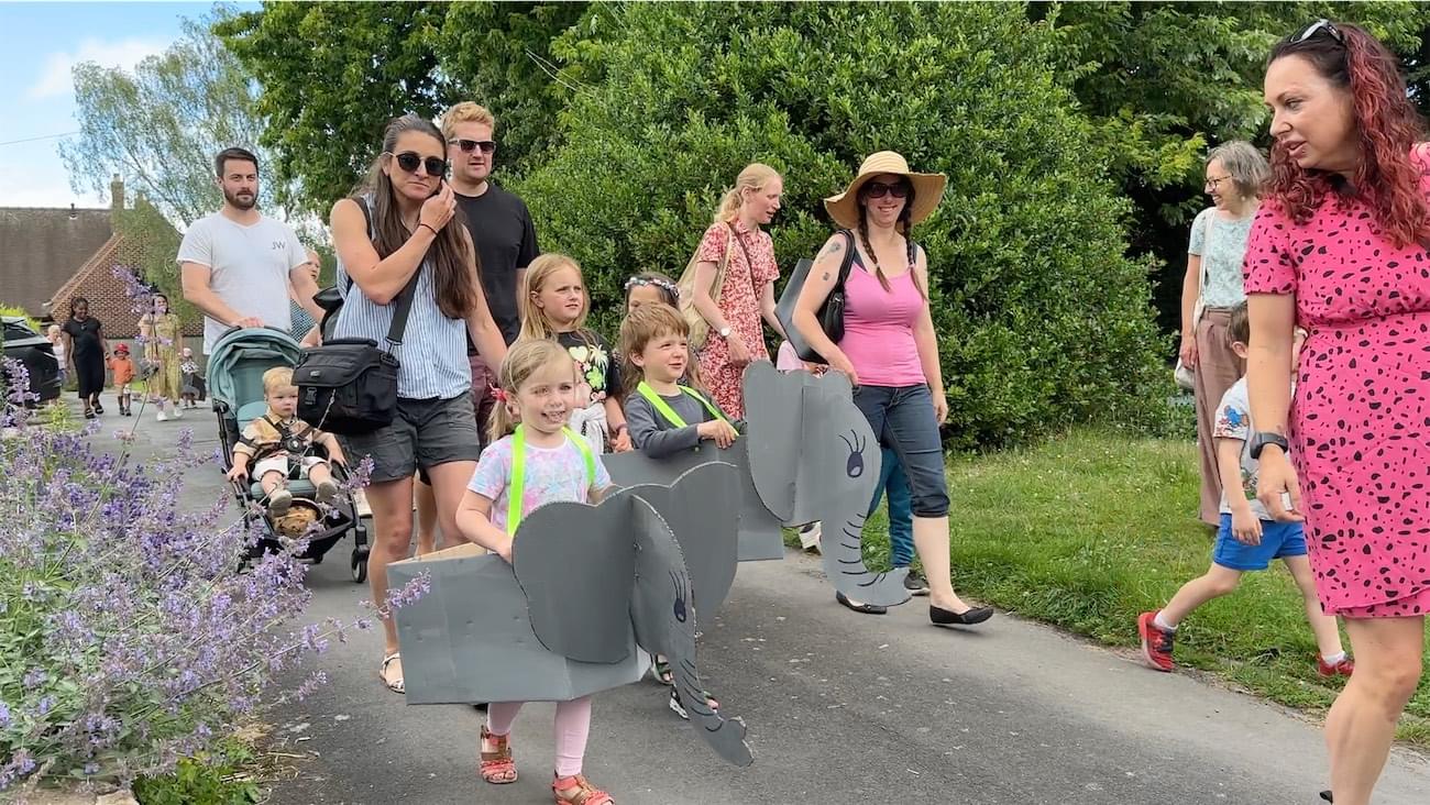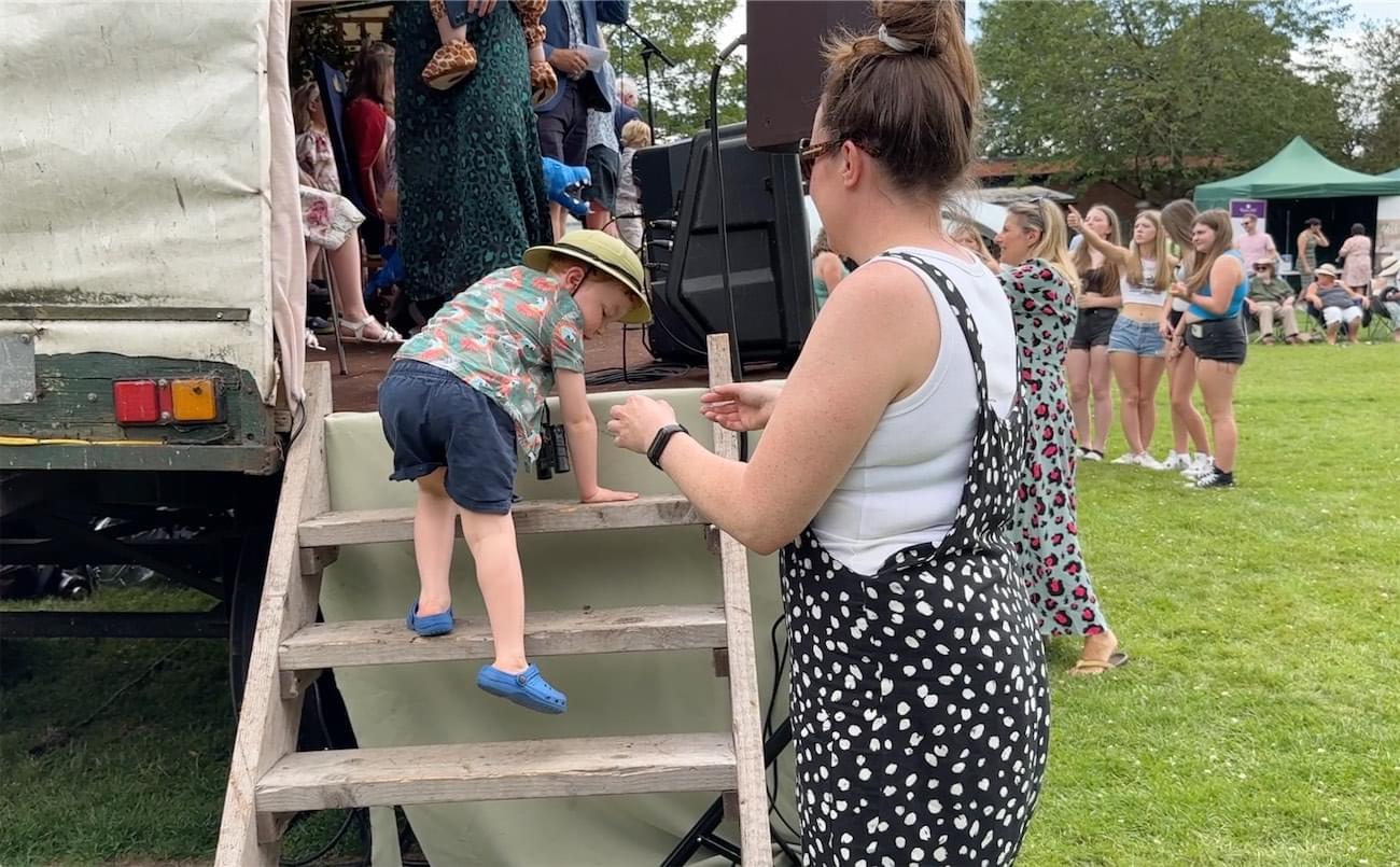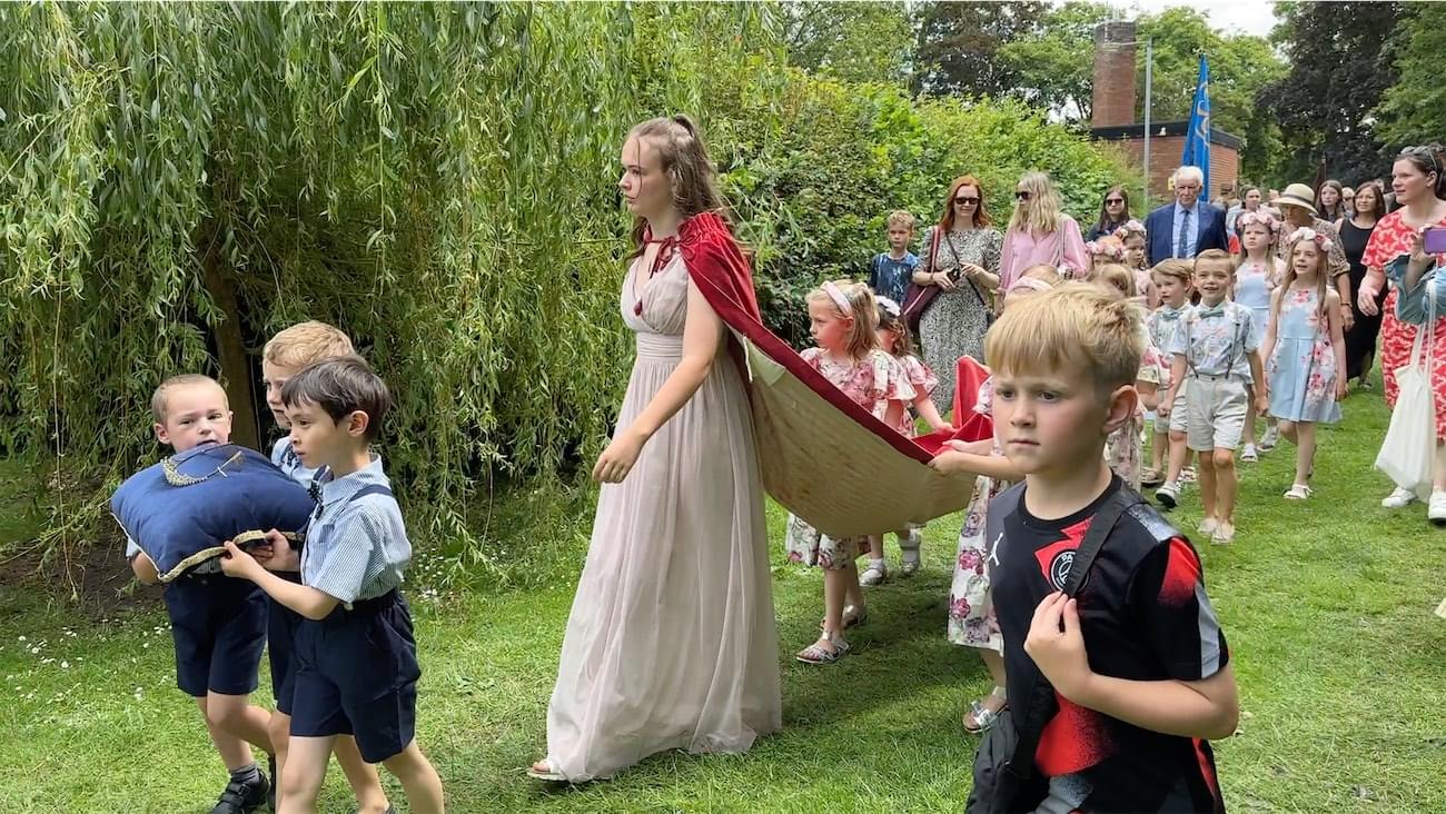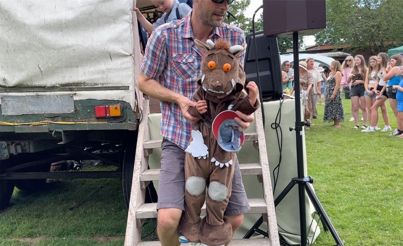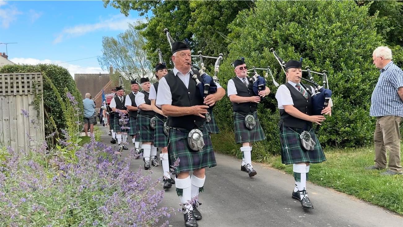 The Village Fete 2023, took place on the 24th June on the Primary School Field, the now traditional site of the Show. The theme this year was ANIMALS, and entertainment led by the Wirral Pipe Band, Paws for Thought, a dogs display team and music from Kayla and the Clockmakers. The Parade with 2023 Rose Queen Maya Joinson and her retinue gathered at Woodfields at 1.00pm and were led by the Wirral Pipe Band around the village to the Primary School field. The weather was extremely warm, and I’m sure stall holders were glad of their stalls being in the shade. By the time of the opening of the show a large gathering were sitting in an arc around the arena facing the stage.
