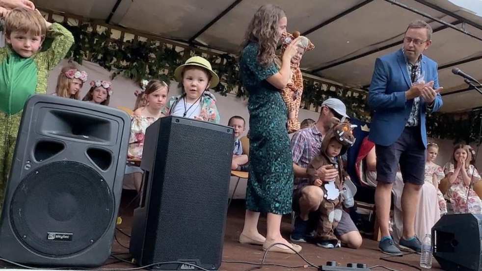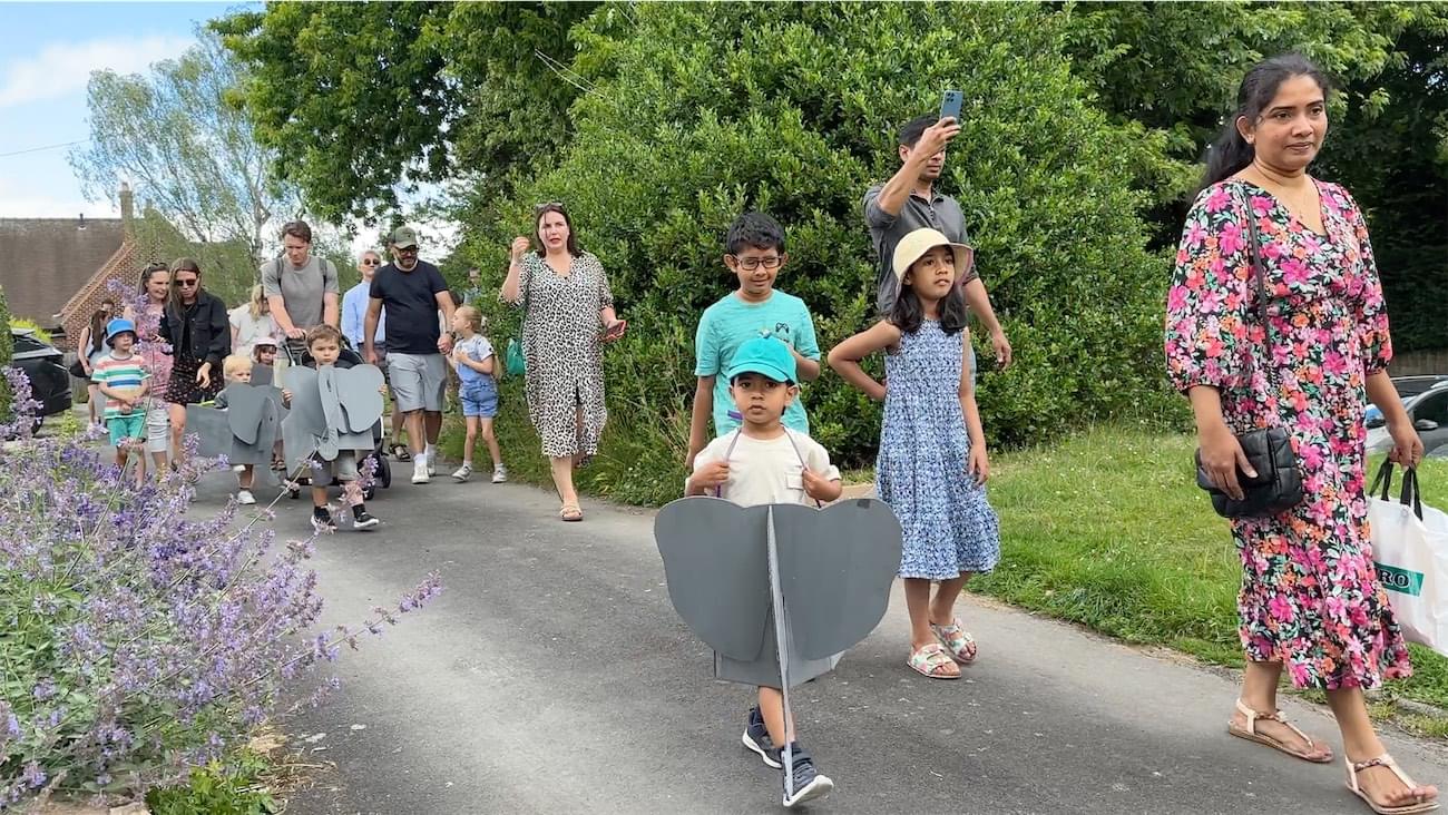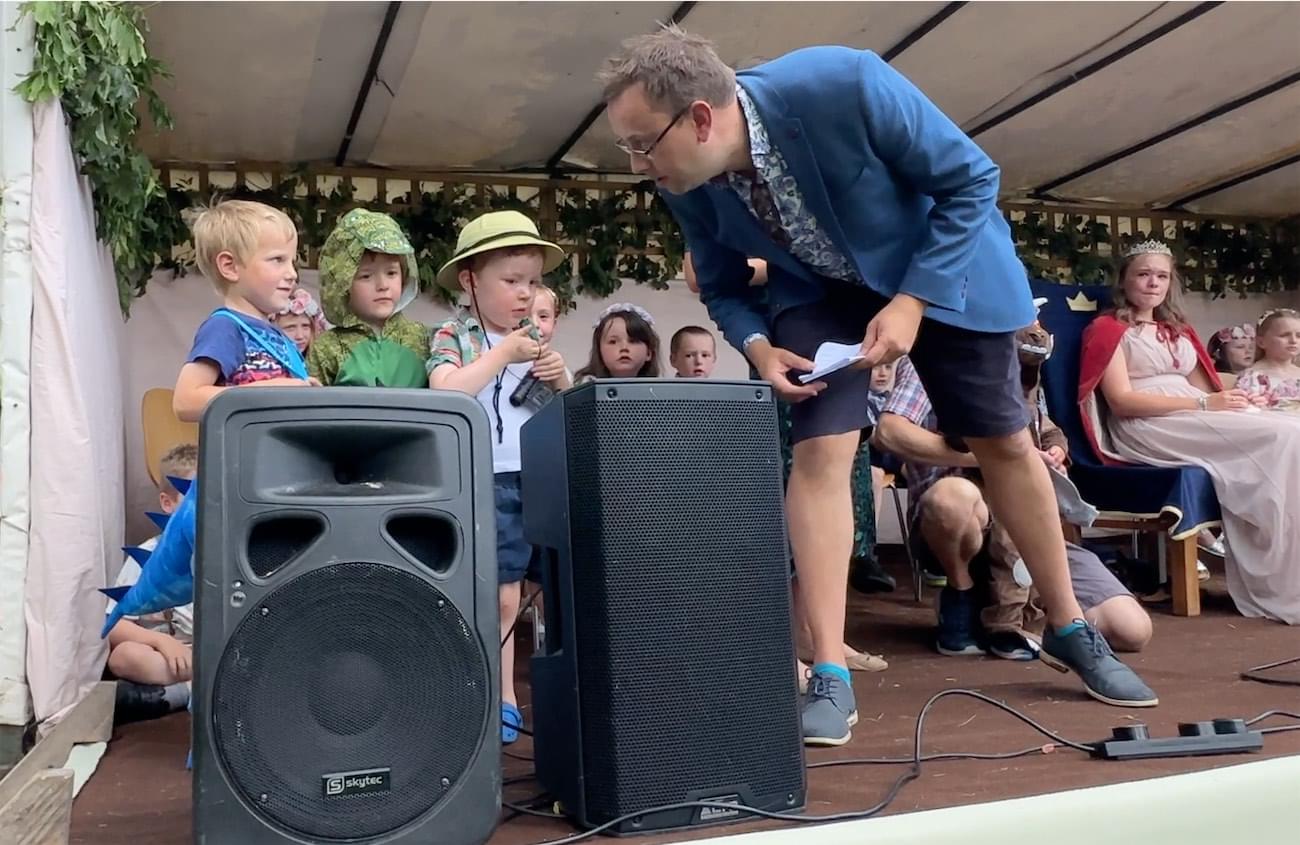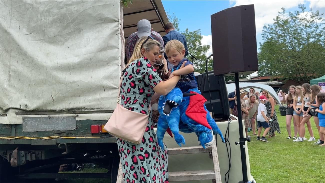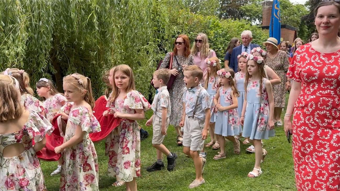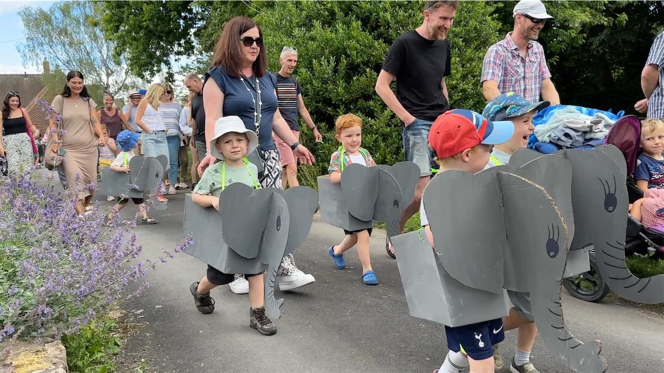 The Village Fete 2023, took place on the 24th June on the Primary School Field, the now traditional site of the Show. The theme this year was ANIMALS, and entertainment led by the Wirral Pipe Band, Paws for Thought, a dogs display team and music from Kayla and the Clockmakers. The Parade with 2023 Rose Queen Maya Joinson and her retinue gathered at Woodfields at 1.00pm and were led by the Wirral Pipe Band around the village to the Primary School field. The weather was extremely warm, and I’m sure stall holders were glad of their stalls being in the shade. By the time of the opening of the show a large gathering were sitting in an arc around the arena facing the stage.
