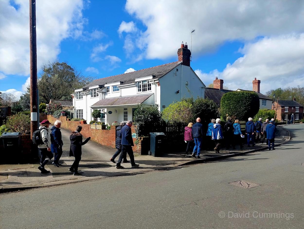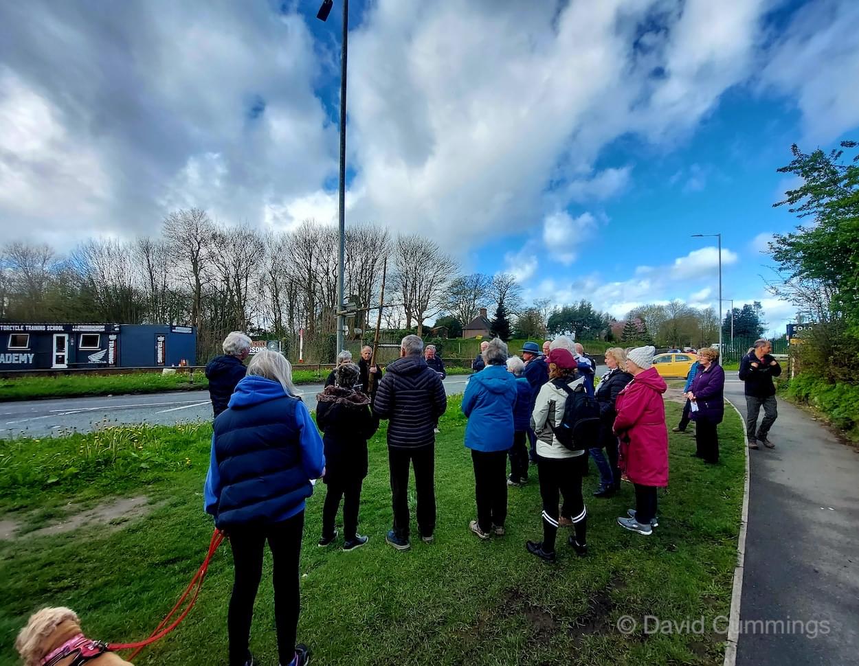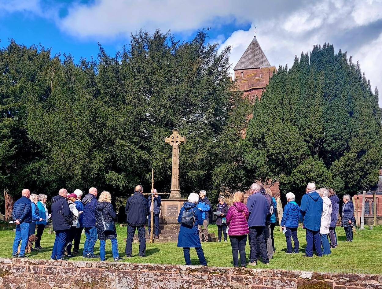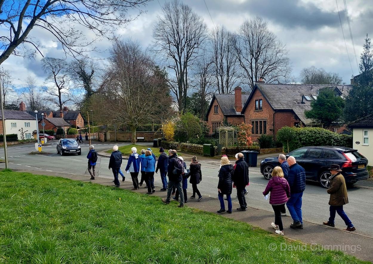 Many of the congregation from St James’ in Christleton have witnessed this event in Chester and walked from the village to take part in it. This year with no event in Chester, a Walk of Witness has taken place in Christleton. Parishioners gathered on Good Friday at the Abotts Well Hotel on Whitchurch Road for breakfast, kindly donated by the hotel, before setting off through part of the Village on their walk. The Walk started at 10.00am with prayers outside the hotel, led by the Rev. Tina Lightfoot, before setting off behind a rough hewn wooden cross towards Whitchurch Road and the Glass House. This is the point where the Christleton and Boughton parishes meet, and on the Beating of Bounds ceremony held every ten years, parishioners are led, first in prayers, and then walk through the house following the parish boundary. On this occasion the Walk of Witness participants went along the Whitchurch Road to the west and along Ring Road, to Toll Bar Road. The route taken was then along Toll Bar and Whitchurch Roads stopping for a reading and prayers near the A55 road bridge. There were 30 or so participants and after the cross was exchanged to a new leader, the walkers walked along to Quarry Bridge, where they crossed over the canal. After prayers and an exchange of cross bearer, the walkers went down Quarry Lane, passed the Primary School turning right into Hawthorn & Bush Roads. After prayers, the route continued along Hawthorn and Sandrock Roads into Quarry Lane stopping near the old Infant School, before heading up Village Road and up to the Church grounds. The group were joined by several other parishioners for a short service at the Memorial to Canon Lionel Garnett on the Church Green. Here people were invited to hammer nails into the wooden cross, as a symbol of the Crucifixion of Christ.