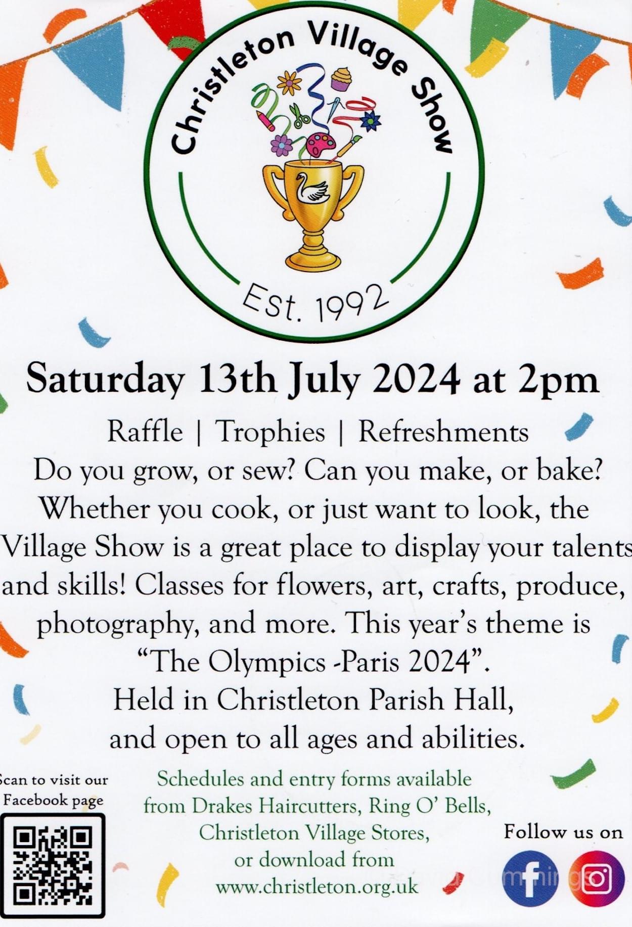 The 2024 Village Show was held in the Parish Hall on Saturday 13th July 2024. The theme this year was The Olympics-Paris 2024 and the show was opened by David Cummings BEM. He spoke about the long history of the show dating back to at least 1875, and of the founder Rev. Canon Lionel Garnett, who was determined to improve the quality of life in the village, and organised events to provide a new church and school. The Village Fete raised money for the new Church, and the Village Show a new Boys School. The Rector was supported in all his fund raising activities by Lucy Ann Ince from Christleton Hall, and many local worthies, including The Duke of Westminster, the Mayor of Chester and local businessmen & trades people.
