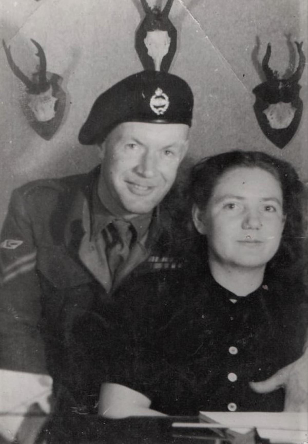 Field Marshall Montgomery was in charge of the Brigade, when the Royal Scots Greys joined up with the 1st Royal Tank Regiment. Whilst carrying out her interpreting duties, Gertrude repeatedly kept being given translation tasks by the same English officer, one of Monty’s personal bodyguards. Tank Captain W.O. Arthur Wright. “He clearly had seen someone he liked very much”
