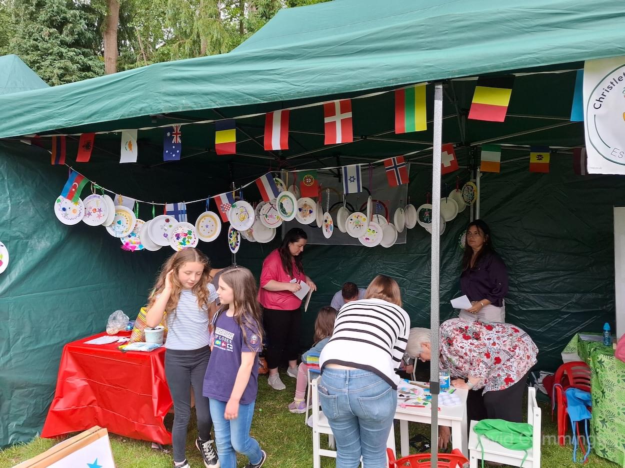 The traditional Christleton Village Fete was held this year on Saturday June 29th, starting with the parade through the village led by the Wirral Pipe Band. The new route chosen, due to constraints of obtaining an expensive road closure, now starts at the Toast Rack and follows safely around Woodfields to the Primary School Field. There has always been an enthusiastic following of the parade, and this year was no exception, with parents, grandparents and villagers running alongside the procession. The theme this year was the Paris Olympic Games, and many of the stalls were dressed accordingly.