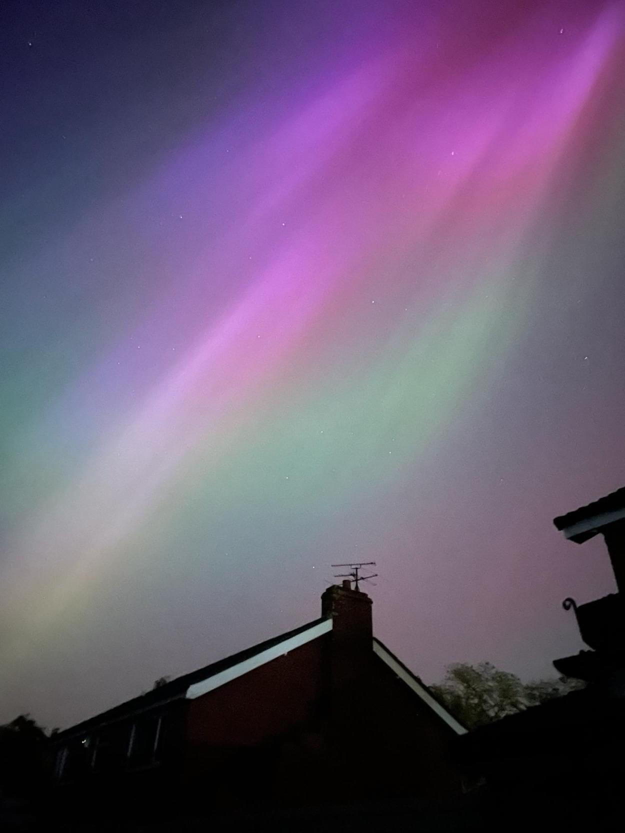 I guess frustration that I had missed the Christleton display, was lessoned by finding that several people had not only witnessed this very rare event, but had photographed it, and have very kindly allowed me to share their images with you. So a very big thank you to Richard Hall and Becki Tall for their pictures taken right in the centre of the village. I have since been sent images from Vienna, where my friends saw an equally spectacular show on the same evening. Why had I missed the Christleton display? Beryland I had gone to bed early, as we had to catch the train to London the following morning to sing The Mozart Requiem with the Really Big Chorus at the Royal Albert Hall. That was a wonderful occasion, and our last opportunity to sing with the chorus there. I can’t have any regrets, but I wish I had seen the aurora in Christleton.