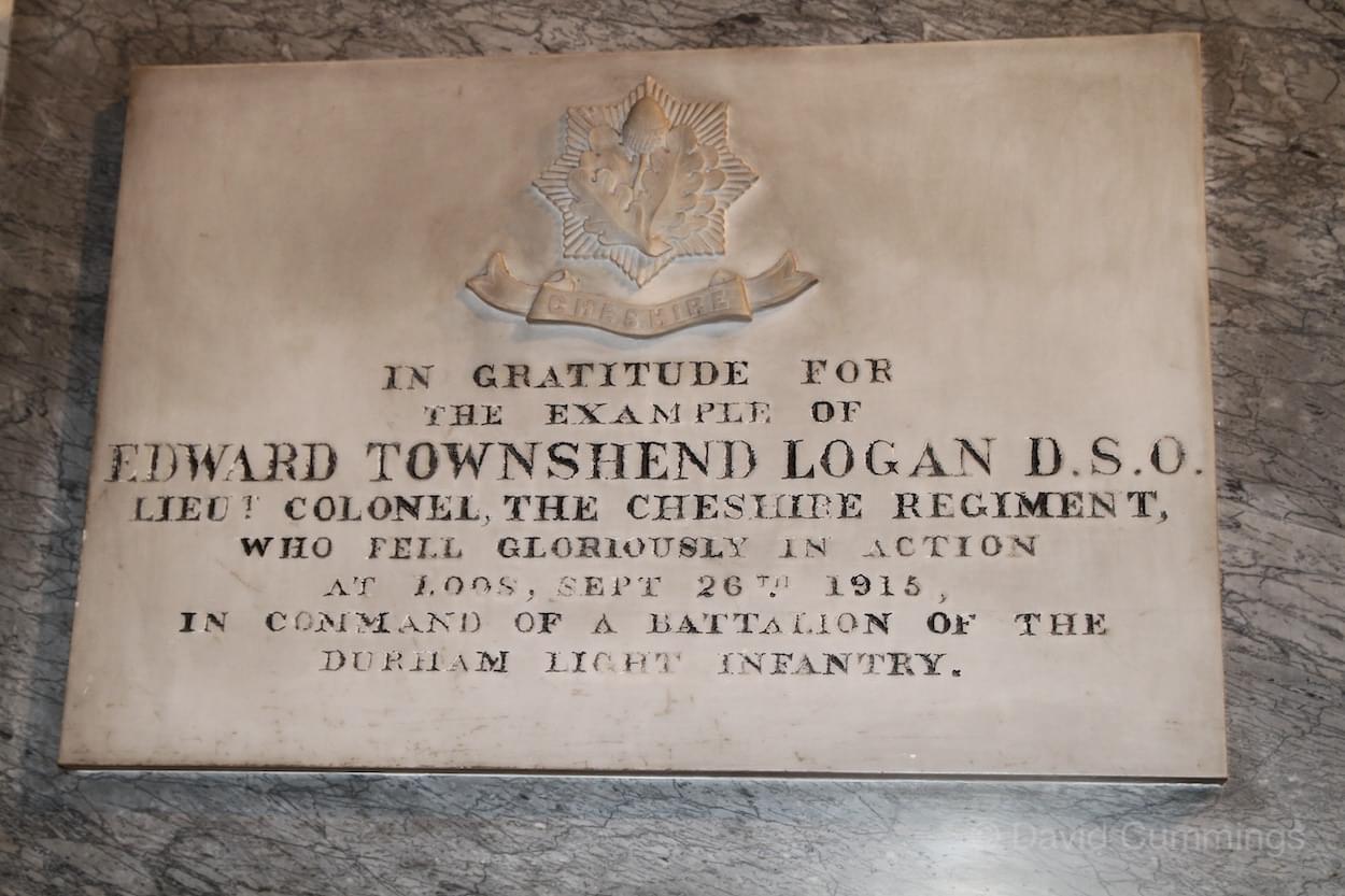 Above the figure of Christ are the symbols of a shell representing St James’, a bell rope for the tradition of bell ringing in the church since 1737, and a mute swan representing the village. On either side of Christ are figures representing village history over the last thousand years. On the lower right hand side, is Robert, Baron of Malpas, patron of the church in 1086. Above him is the kneeling figure of Celia Fiennes the famous traveller, who rode through Christleton on her white horse in 1685. The uppermost figures are Lucy Anne & Townsend Ince, benefactors of the present church building and of the village in general in Victorian times.