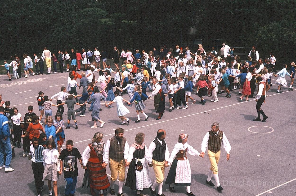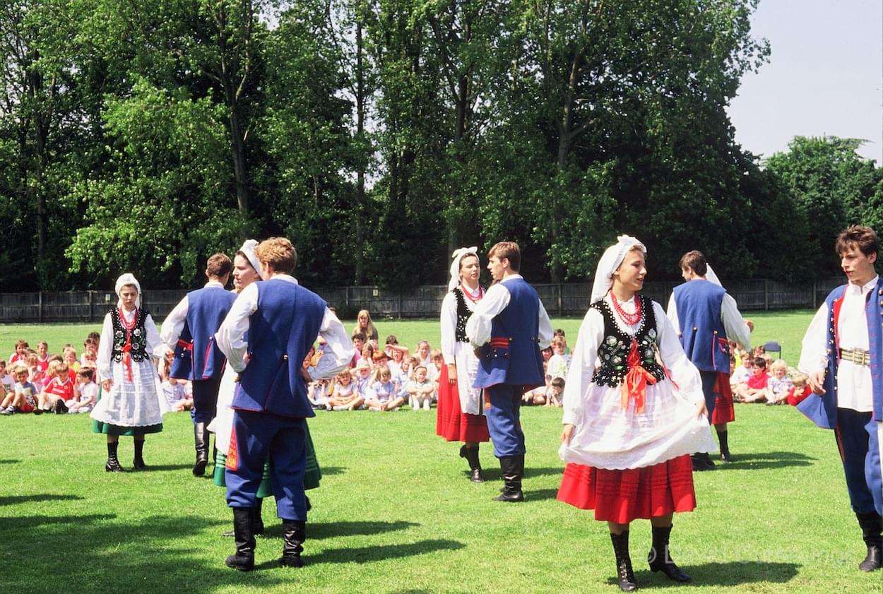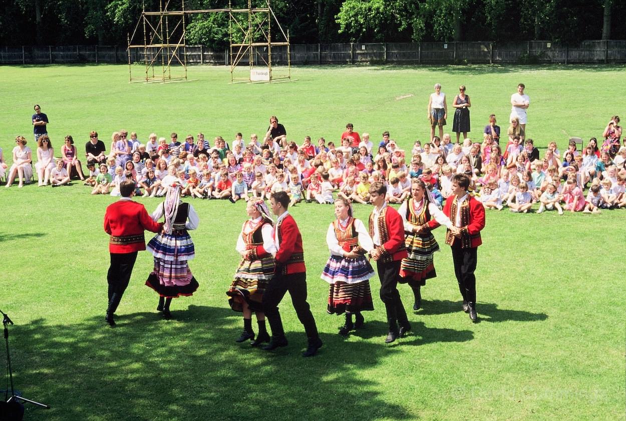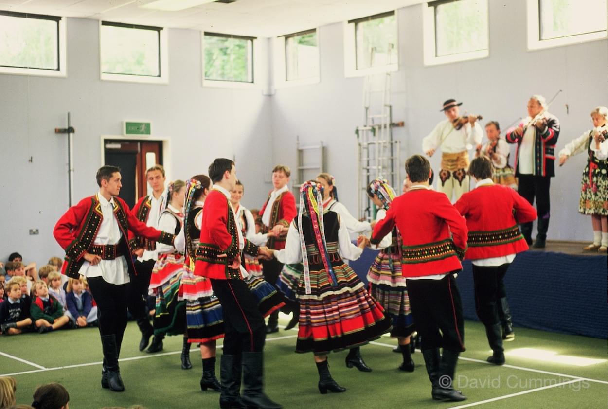 The above events usually took place on a Friday, and the following morning, our Maypole Team would perform their sequence of dances outside the Town Hall as part of the Folk Festival led by the Deva Ensemble. These events were always memorable and we were very fortunate to be invited to take part. In fact some of the children later joined the Folk Ensemble and one of our Infant teachers played in their band. I firmly believe that education is not just about rote learning, but an opportunity to widen the knowledge of children through a variety of experiences. Meeting friends from a different country and culture through dance was an exciting opportunity for us.