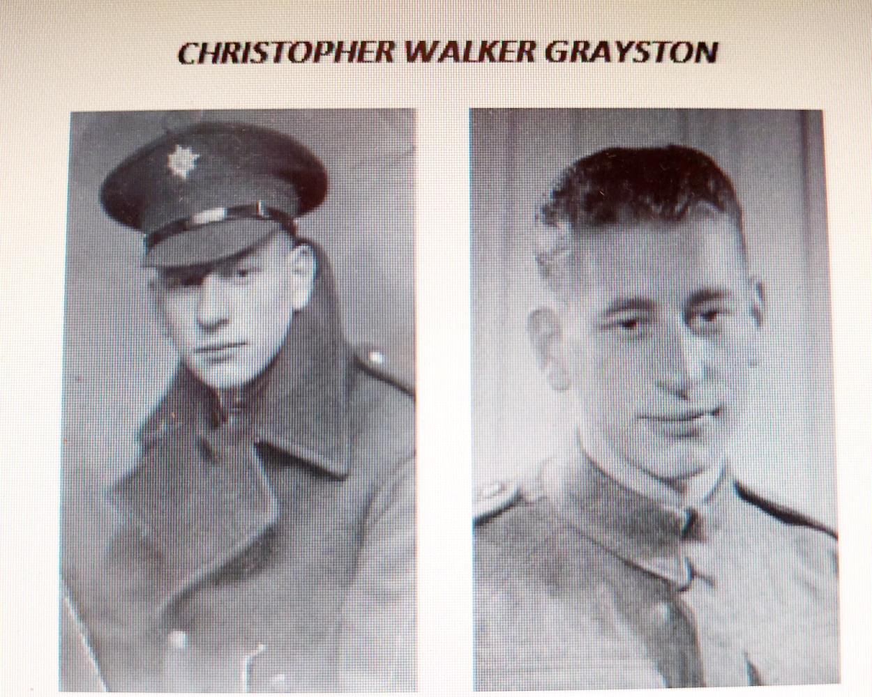 The two very evocative pictures of Christopher were loaned to the researchers by his niece. She had taken her mother, his sister, to visit his grave. He was born on 14th May 1920, the middle child of seven. His two brothers died at an early age, He went on to be a textile worker at Lansil before the war. Walker is a family name, the maiden name of his mother. DC/NM