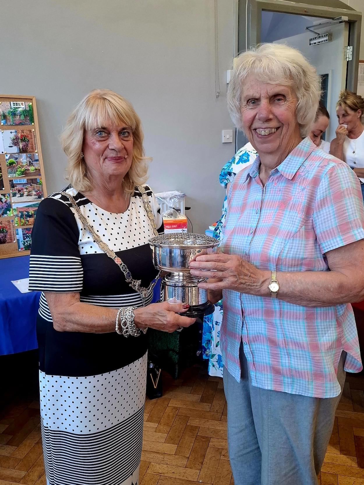Another well supported local event in 2025 was the Annual Village Show, held at the Parish Hall on Saturday 12th July. The event was superbly advertised by lots of colourful scarecrows on the Village Green created by the children of the Primary School. There were a wonderful selection of arts, crafts, flowers, fruit & vegetables and produce on display and the judges must have had a difficult task to choose the winners. Many items are illustrated below, together with some of the prize winners I was able to record. The Show was supported by Mayor elect, Councillor Margaret Parker, who kindly opened the Show and gave out the Prizes. Mrs Parker and her husband Stuart have been enthusiastic supporters of the Show for many years. Congratulations to the Show Committee led by Chairman Lara Jones, who do so much work in the background to make this show happen, and also to the increasing number of competitors who support it. Thanks to the Primary School for their input, which is always so colourful. A large number of villagers and guests attended the event, and the Annex with the teas, coffee and cakes seemed to be always full to capacity. There were some excellent prizes in the Prize Draw, but I don’t have the list of winners to display in this piece.
