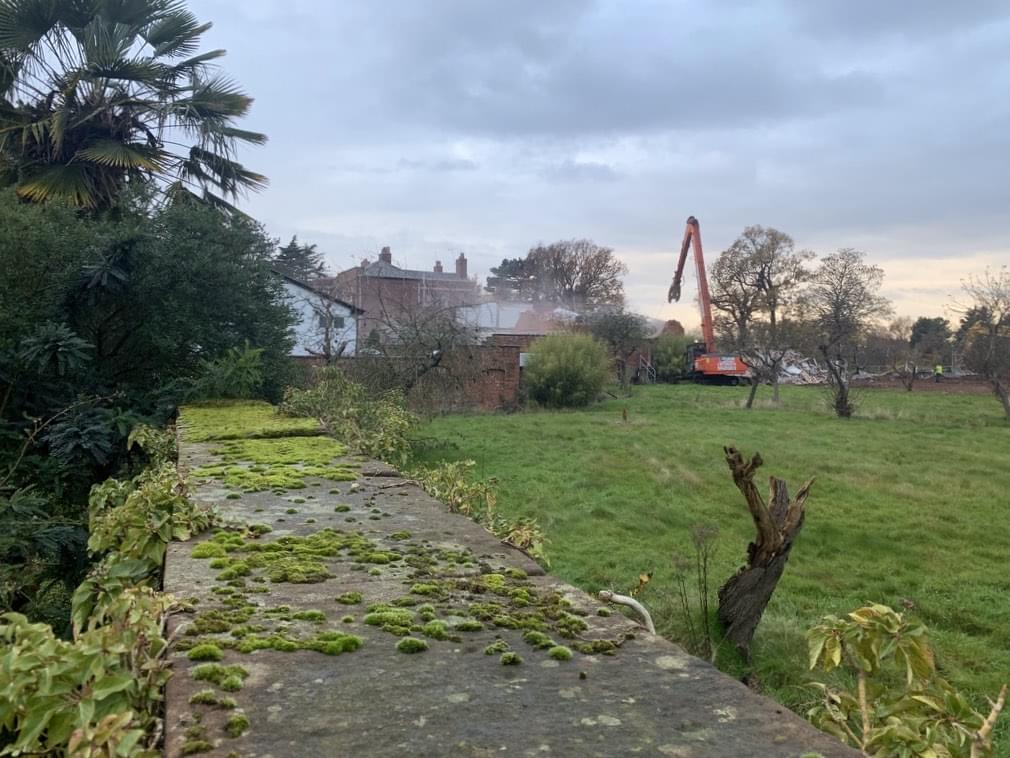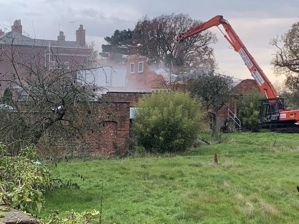 Demolition has started at the former Christleton Law College. By mid morning on Saturday, 19th November 2022 the first modern building had gone.