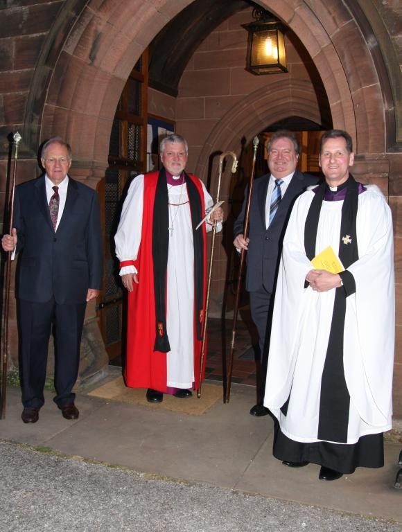The Collation and Induction of our new Rector was held before a packed congregation at St James’ on Wednesday 4th May. The solemn service was led by The Right Revd. Keith Sinclair, Bishop of Birkenhead & The Venerable Dr Michael Gilbertson Archdeacon of Chester, accompanied by The Rural Dean Revd. Mark Hart. The new Rector Revd. Malcolm Cowan was supported by his wife Joyce, a large number of family, friends and members of our choir & congregation, who enthusiastically responded to each part of the service and in the singing of the hymns. The hymns were Guide me O thou great redeemer, I cannot tell, O Jesus I have promised, Great is thy faithfulness, and Lord for the years. A cross-section of the many clergy present, together with members of the local community gave special welcomes to the new Rector during the service. Afterwards a reception was held in the Parish Hall, with nibbles and wine provided by Janet Milton and her team.