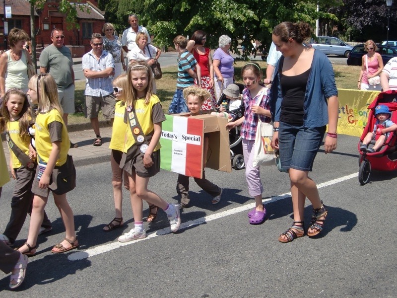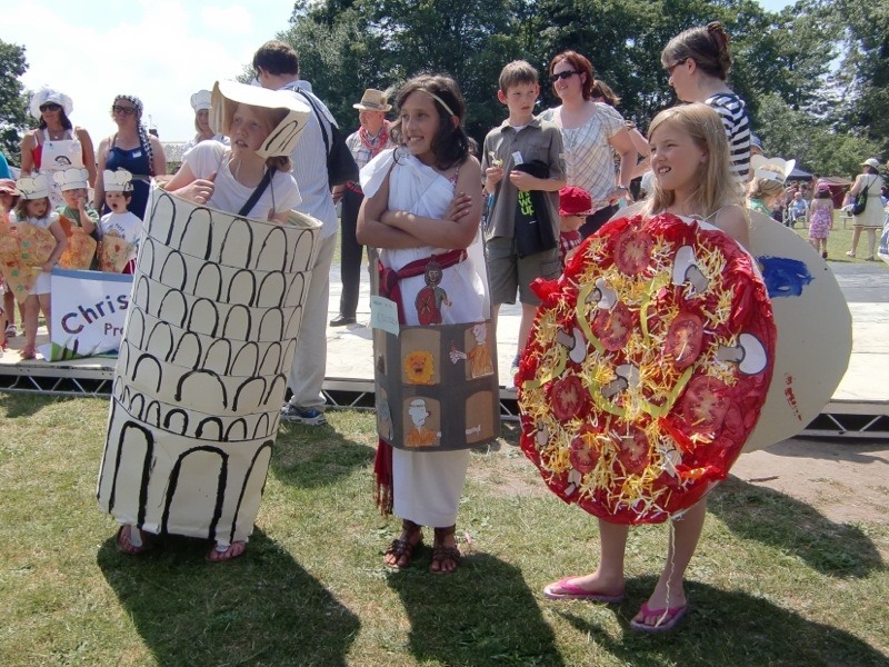 The theme for the Christleton Fete for Summer 2010 was ITALY. Chosen to highlight Christleton's friendship agreement ('twinning') with Marzocca in Italy. For the last few years there has been a growing two way traffic between Christleton and Marzocca, and this year a group of musicians and food lovers came to join us at the Fete. The award-winning Chester Roman Army put on a fine display. Sally Garozzo the renowned Sicilian singer entertained us as well as a group of Marzoccan musicians. Plus a Samba Band and our own Irish Dancers making it a memorable day.